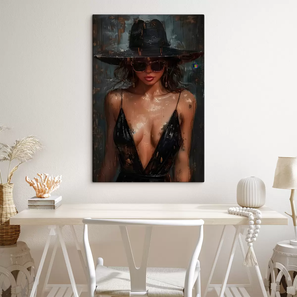 Obraz Dívka v černých šatech a černém klobouku Č. s40441