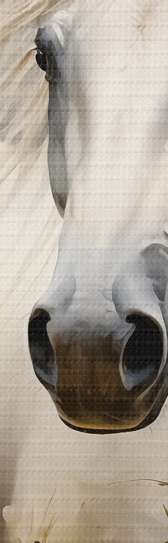 Obraz Bílý kůň v trávě mezi sedmikrásky Č. s40533