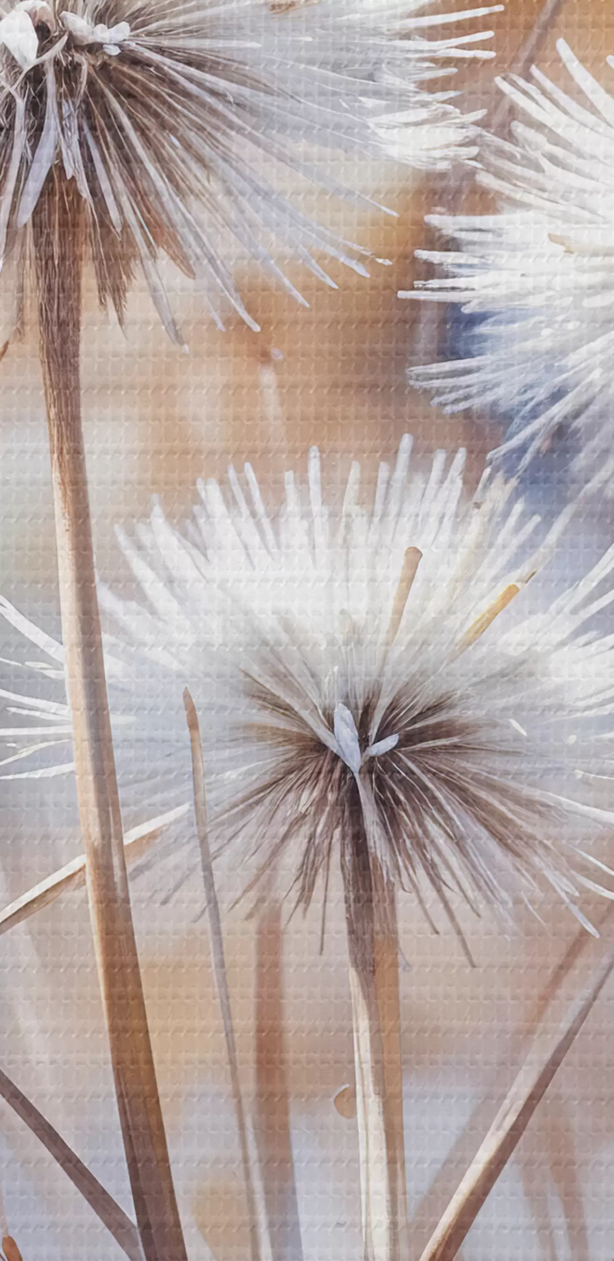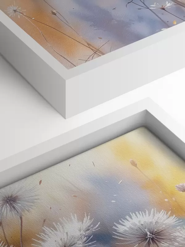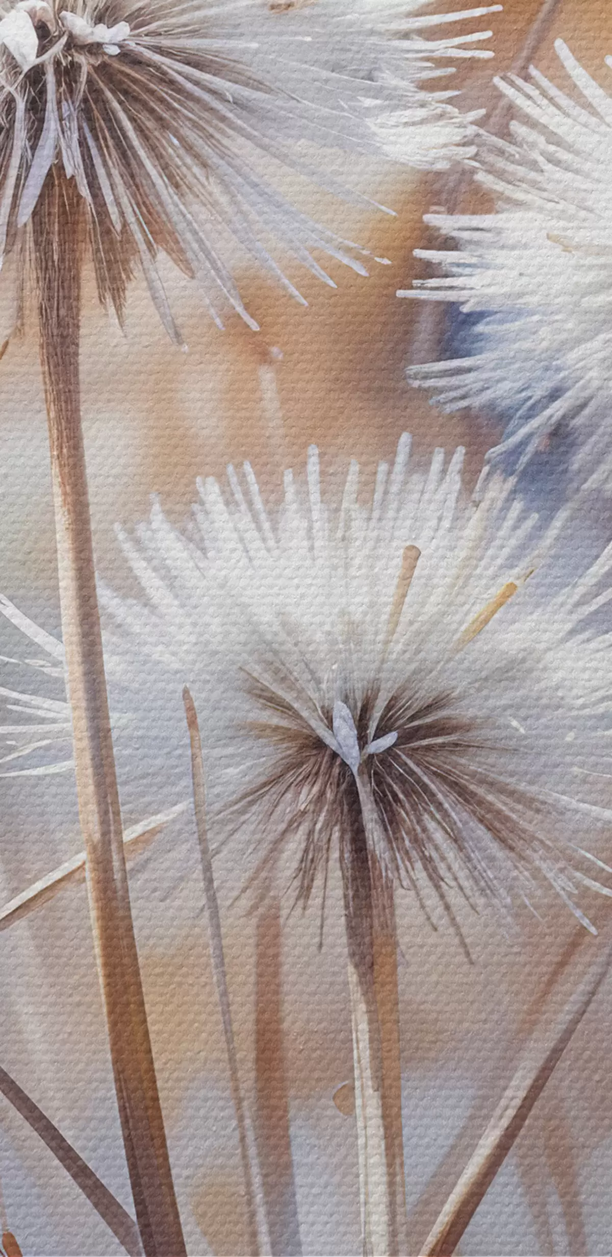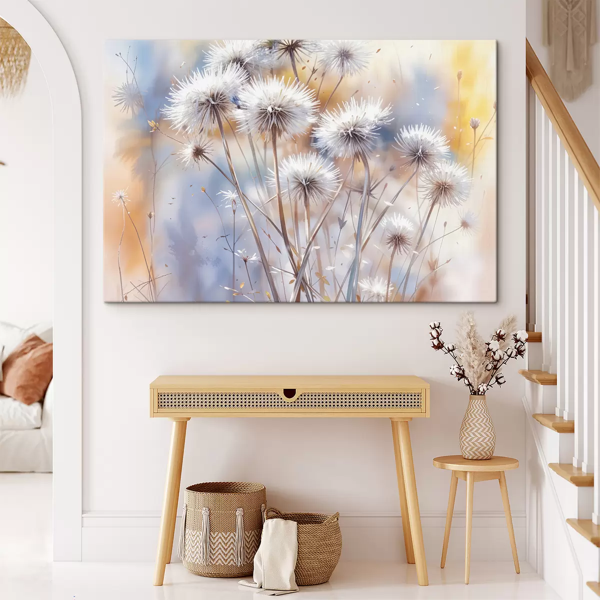 Obraz Nadýchané bílé květy pampelišky na rozmazaném akvarelovém pozadí s teplým osvětlením Č. s40541