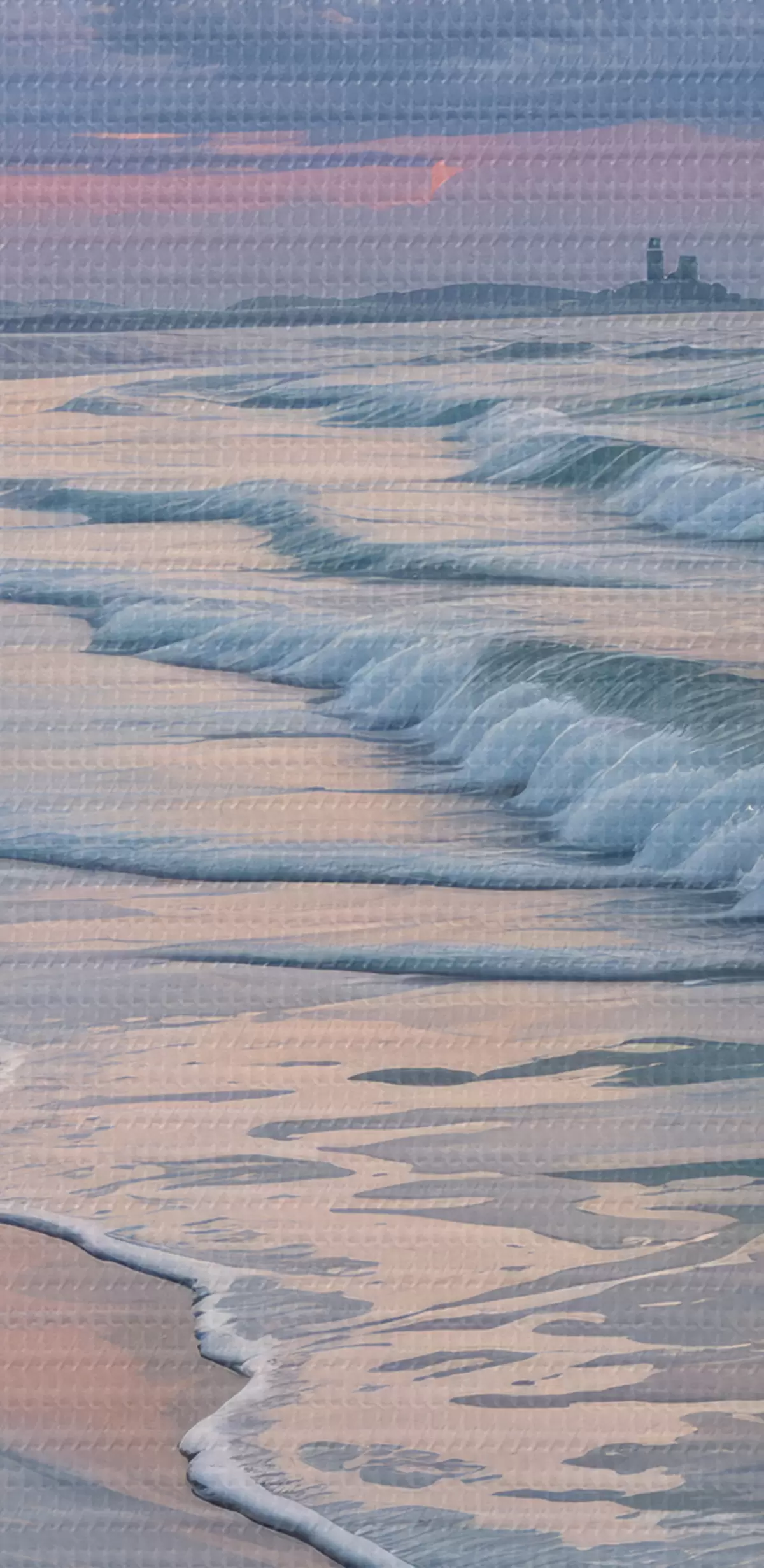 Obraz Klidná plážová scéna při západu slunce s jemnými vlnami narážejícími na písečné pobřeží Č. s40606