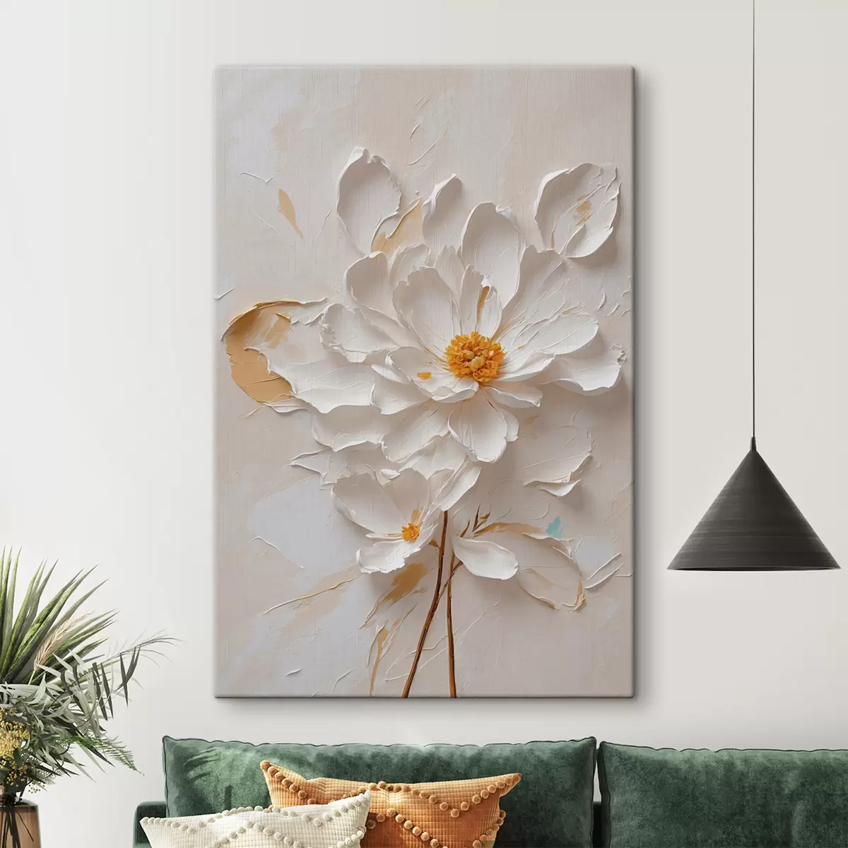 Obraz Bílý květ v oleji s hnědým stonkem Č. s40619