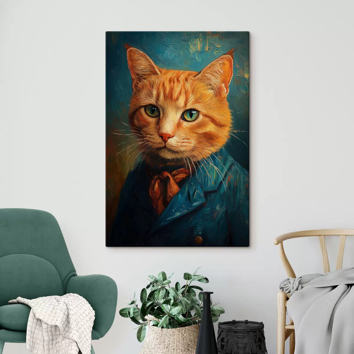 Obraz Červená kočka v obleku ve stylu Van Goghova portrétu Č. s40647