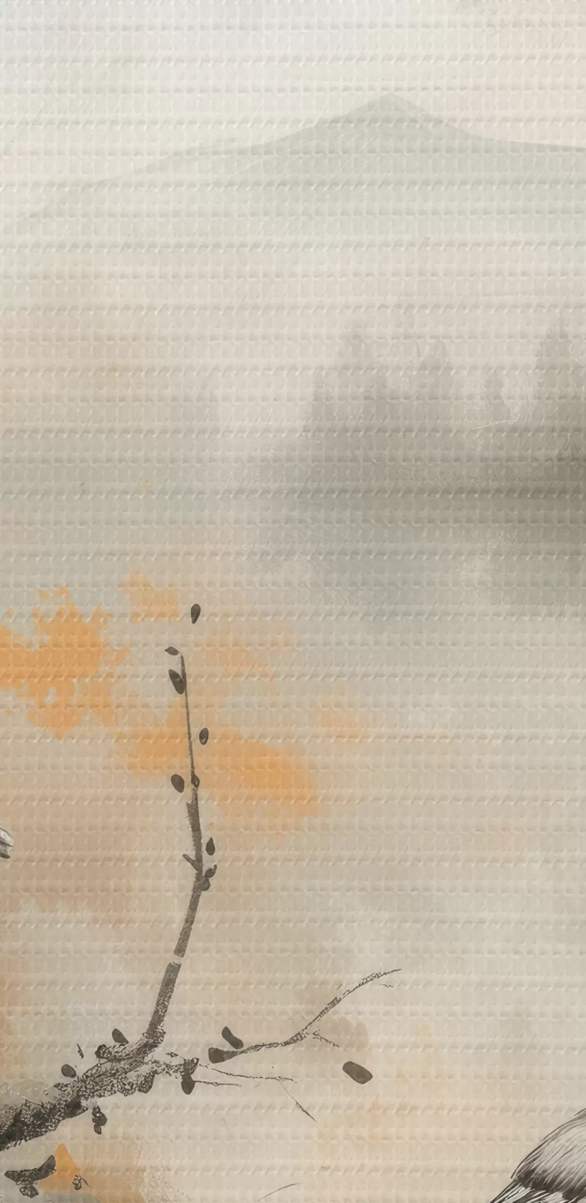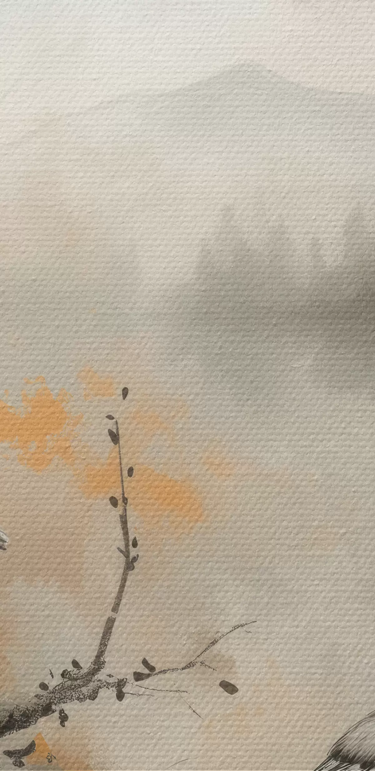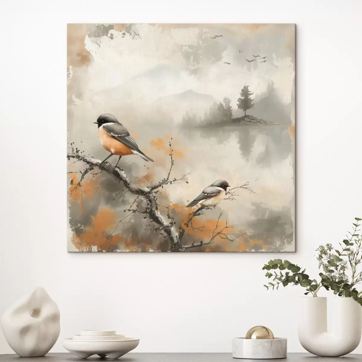 Obraz Akvarelová krajina s ptáky sedícími na větvi v pastelových barvách Č. s40655