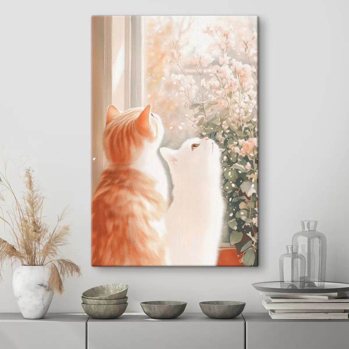 Obraz Ilustrace tužkou a akvarelem zobrazující dvě rozkošné kočky, které spolu sedí Č. s40670