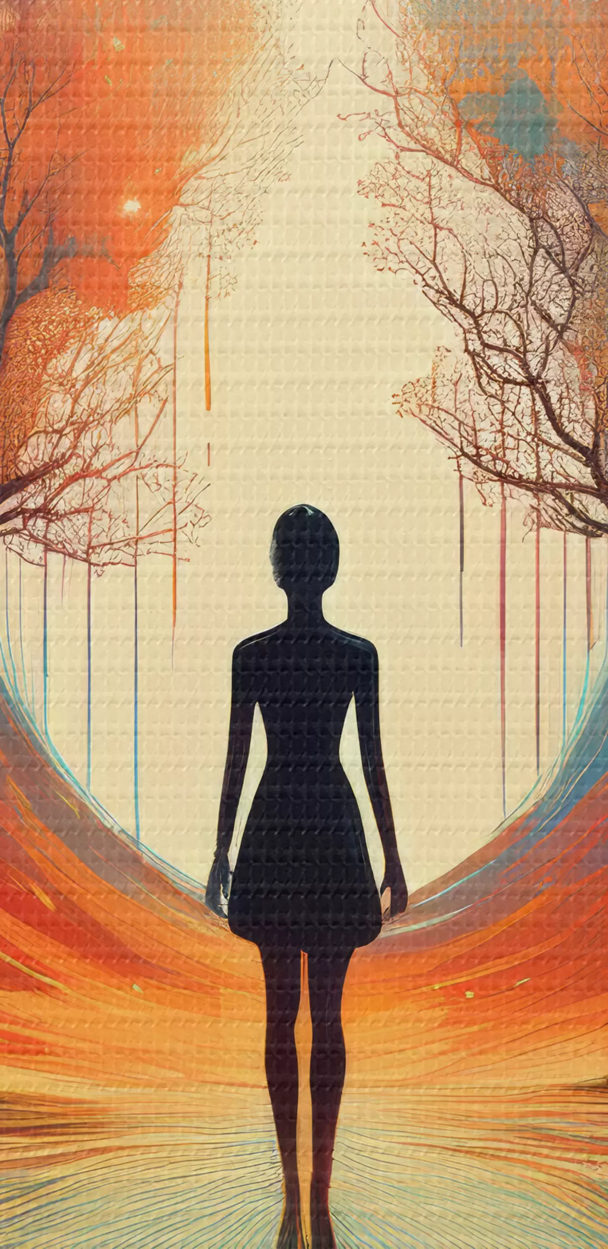 Obraz silueta mezi stromy, sebepoznání, sebereflexe Č. s40713