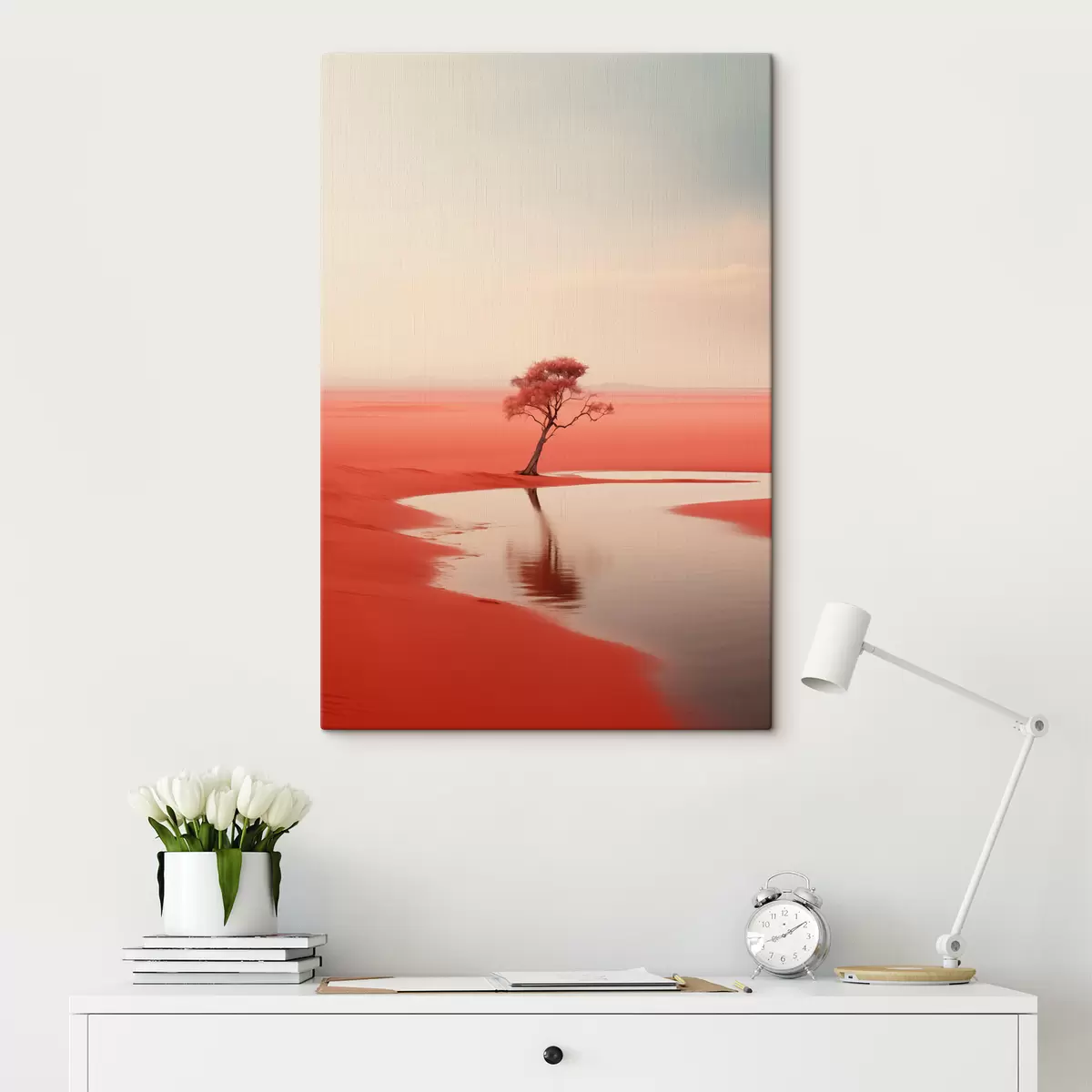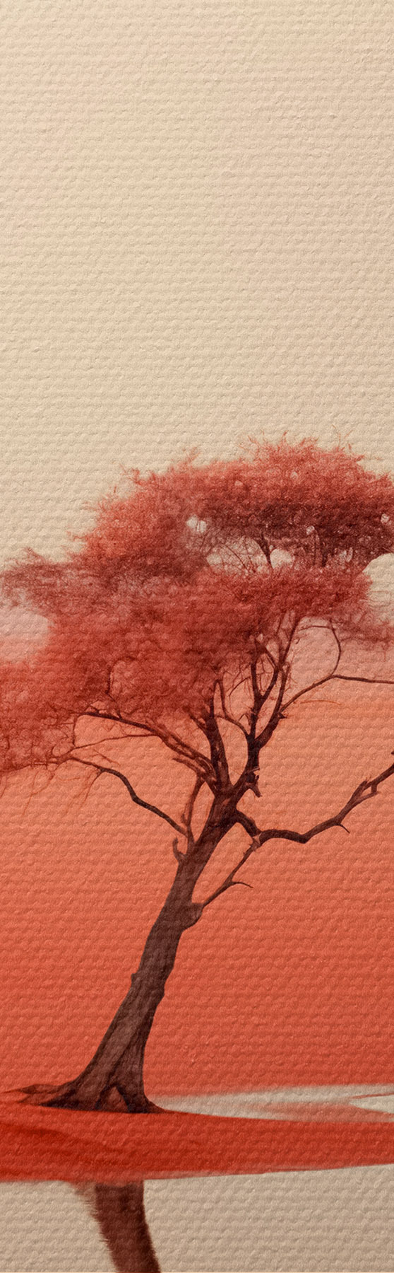 Obraz Minimalistická krajina strom u řeky, červená, šedá barva Č. s40722