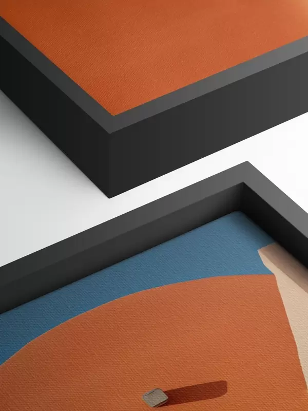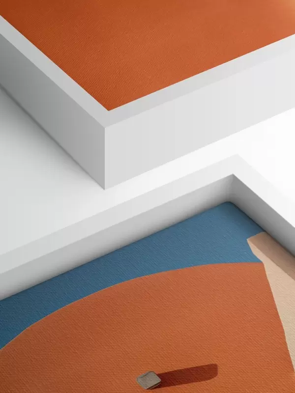 Obraz Minimalistická architektonická budova se schody, modrá, oranžová barva Č. s40724