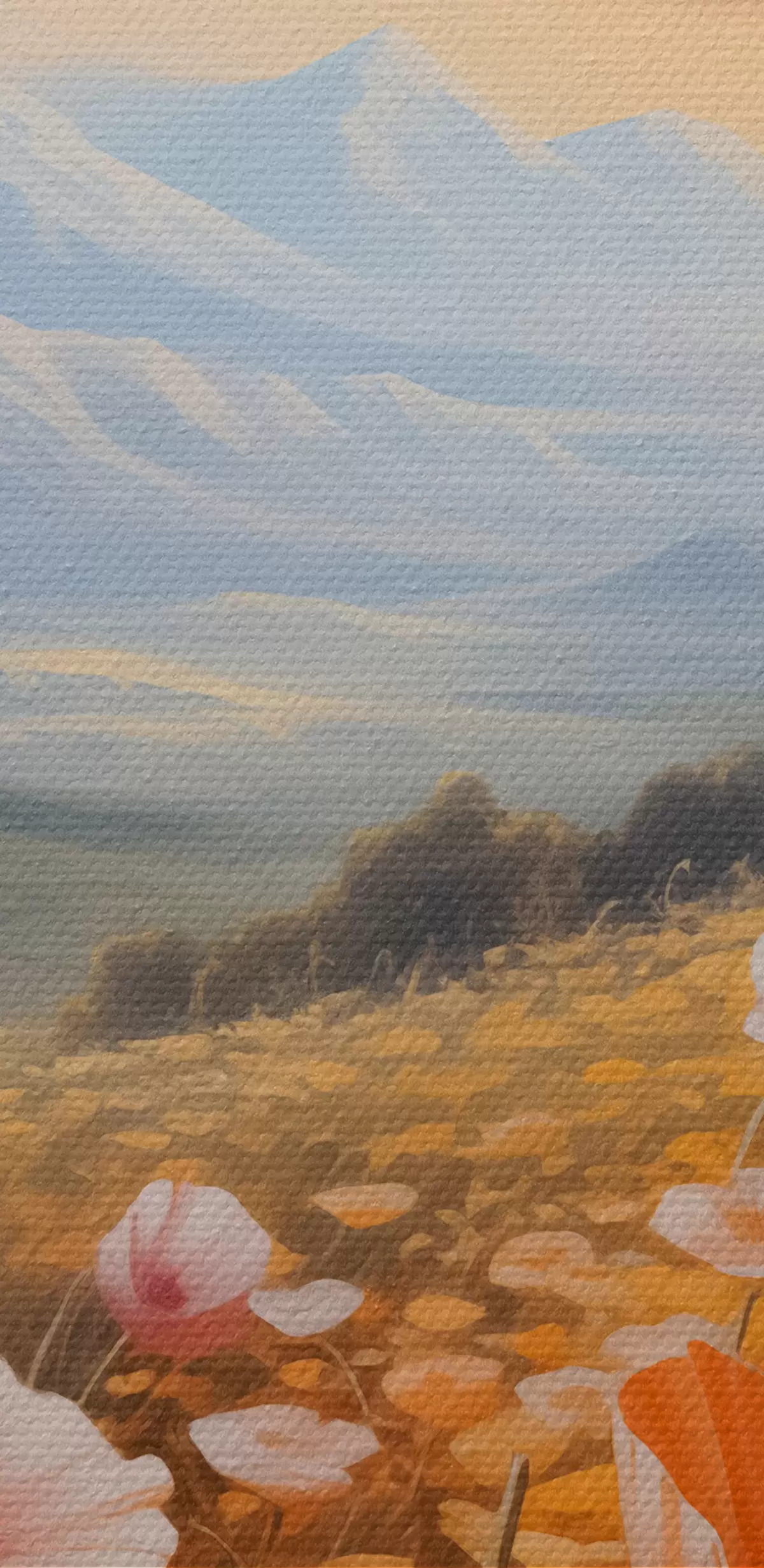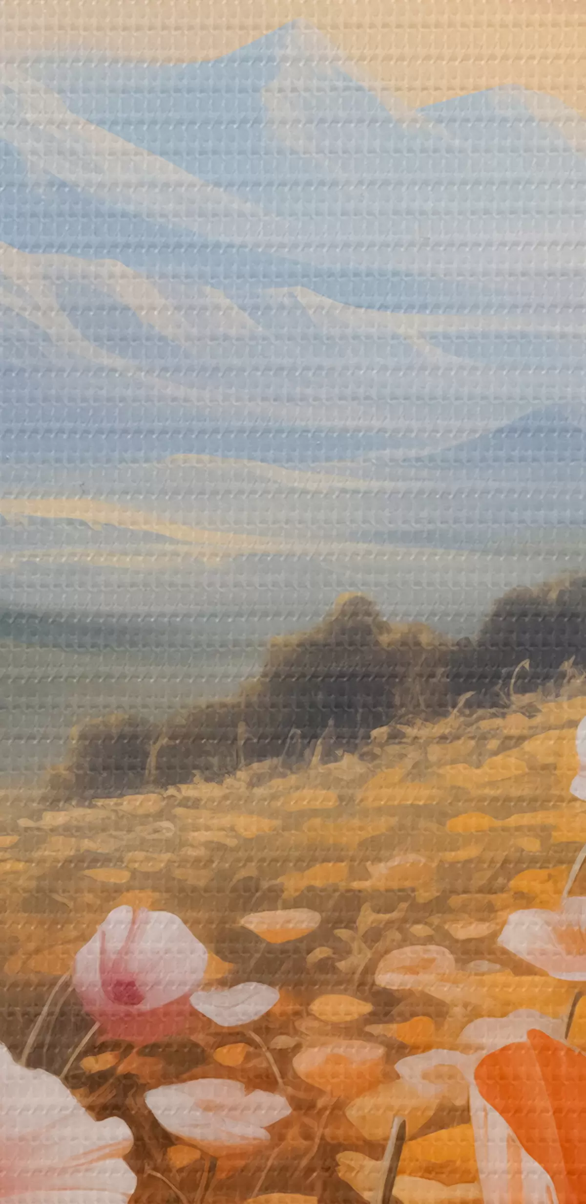 Obraz Makové pole za úsvitu s horami v pozadí Č. s40730