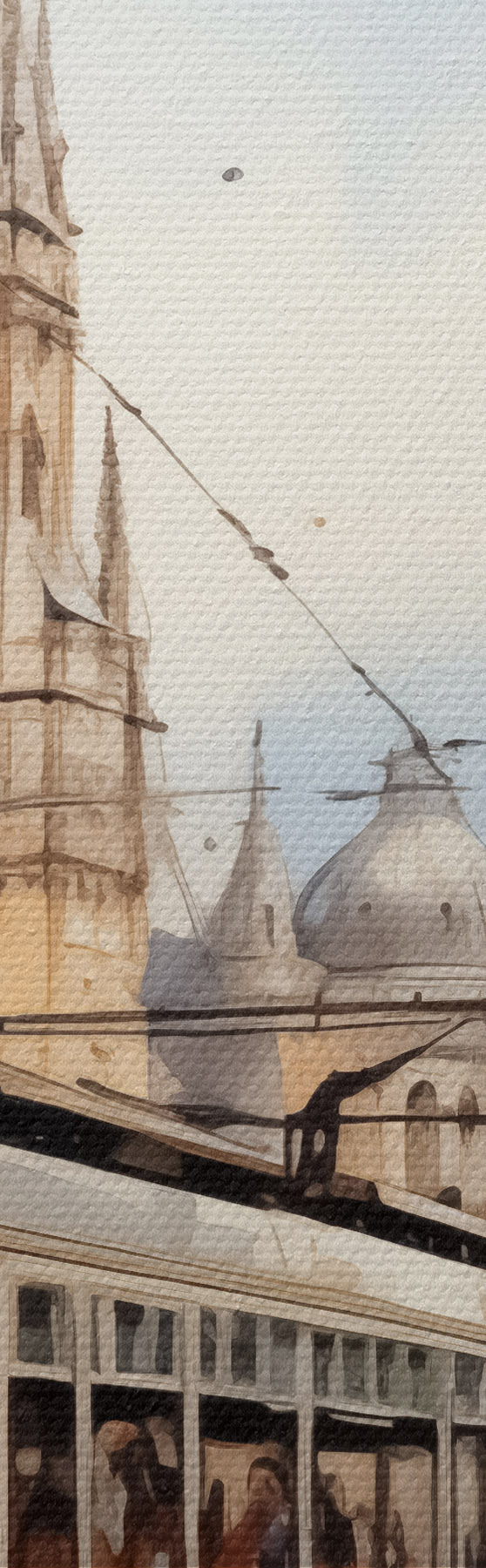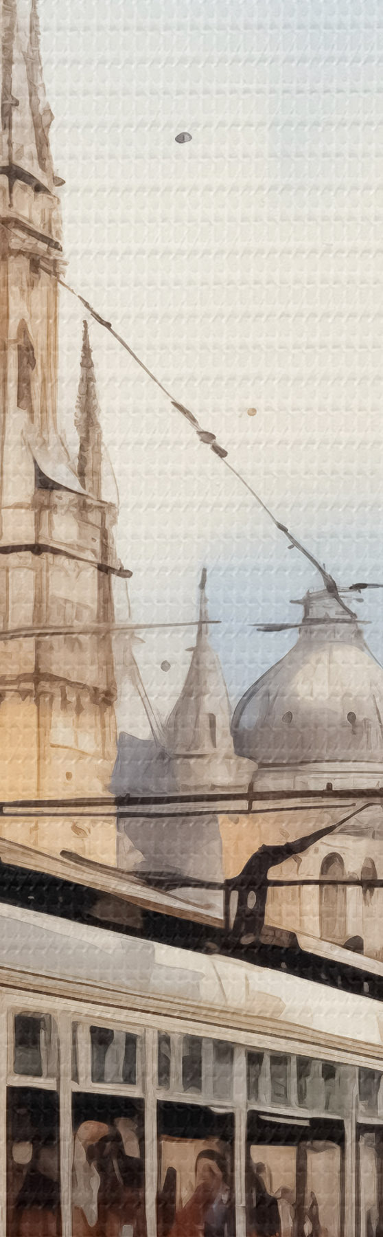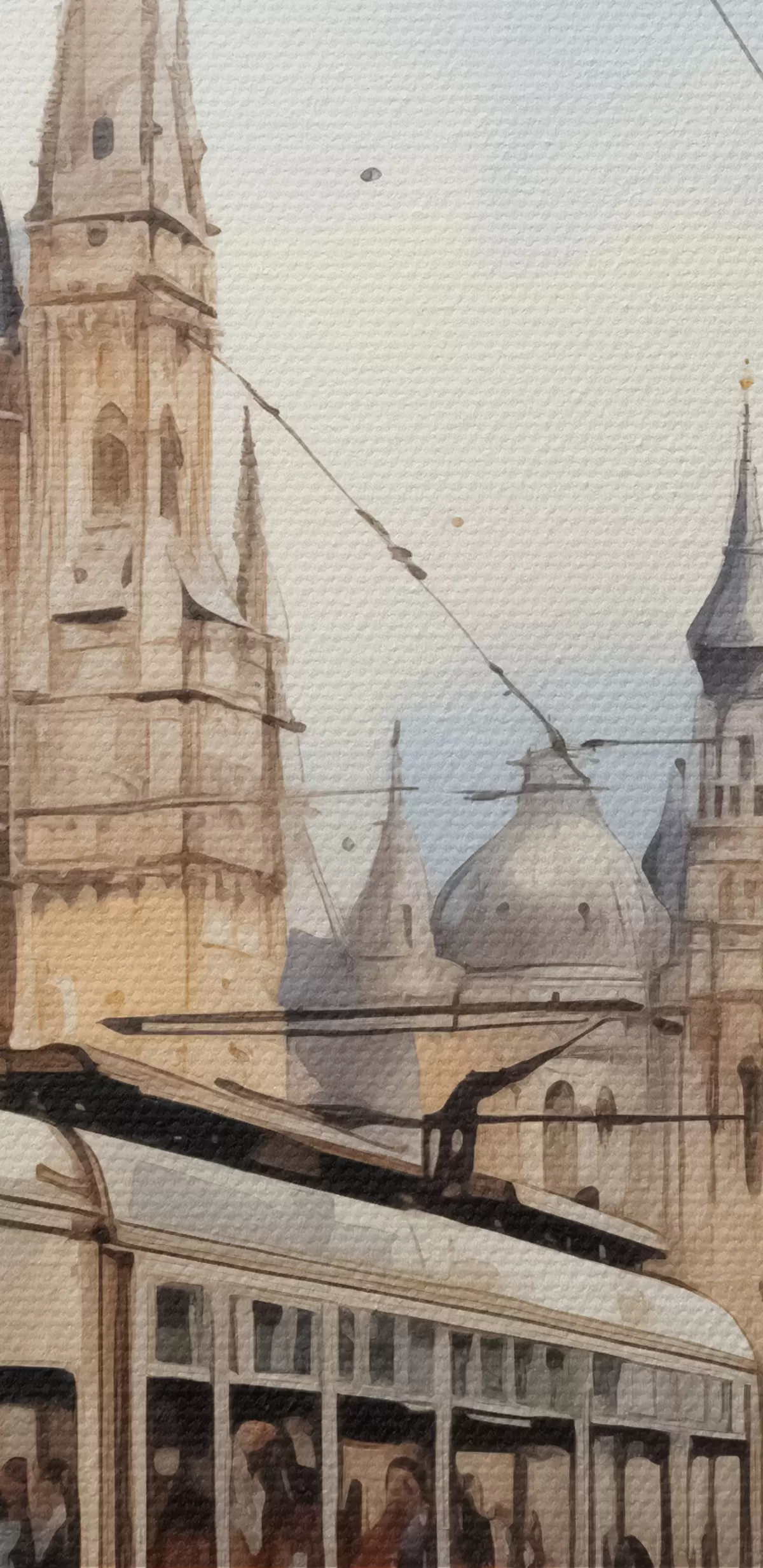 Obraz Červená tramvaj na vídeňské ulici akvarel Č. s40732