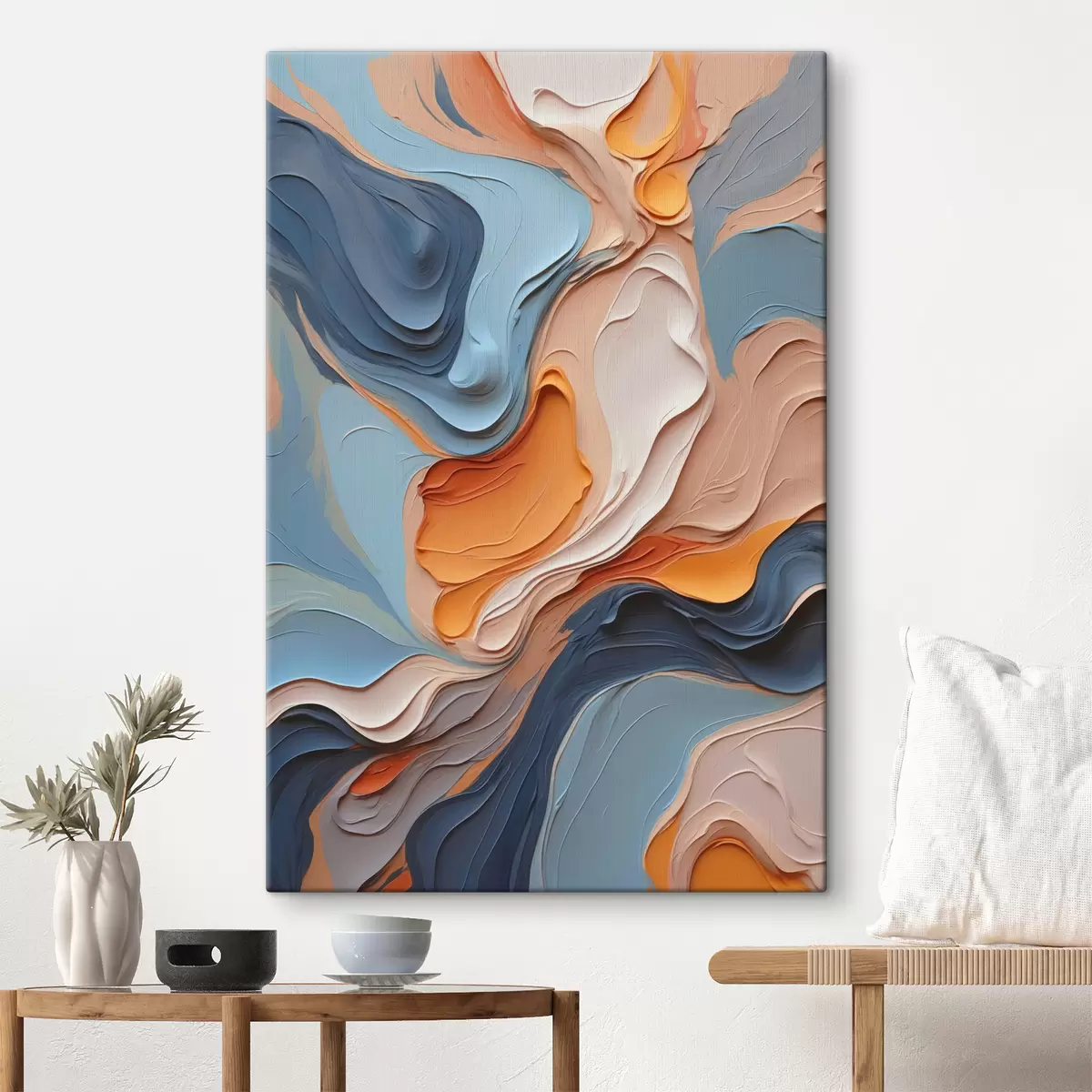 Obraz Abstrakce v modrých a oranžových odstínech s imitací textury Č. s40743