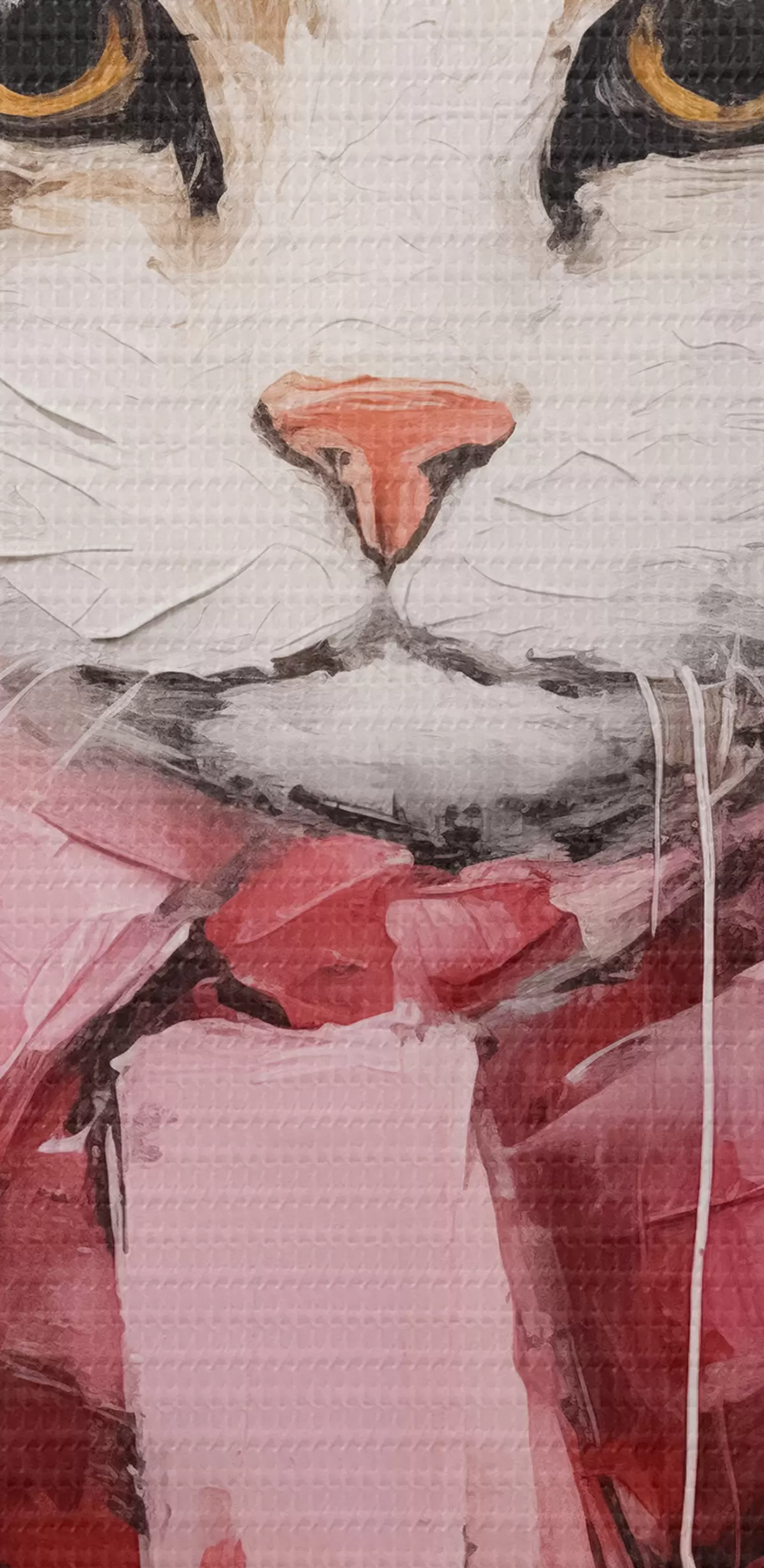 Obraz Šedá černá kočka v růžové čepici a šále Č. s40801