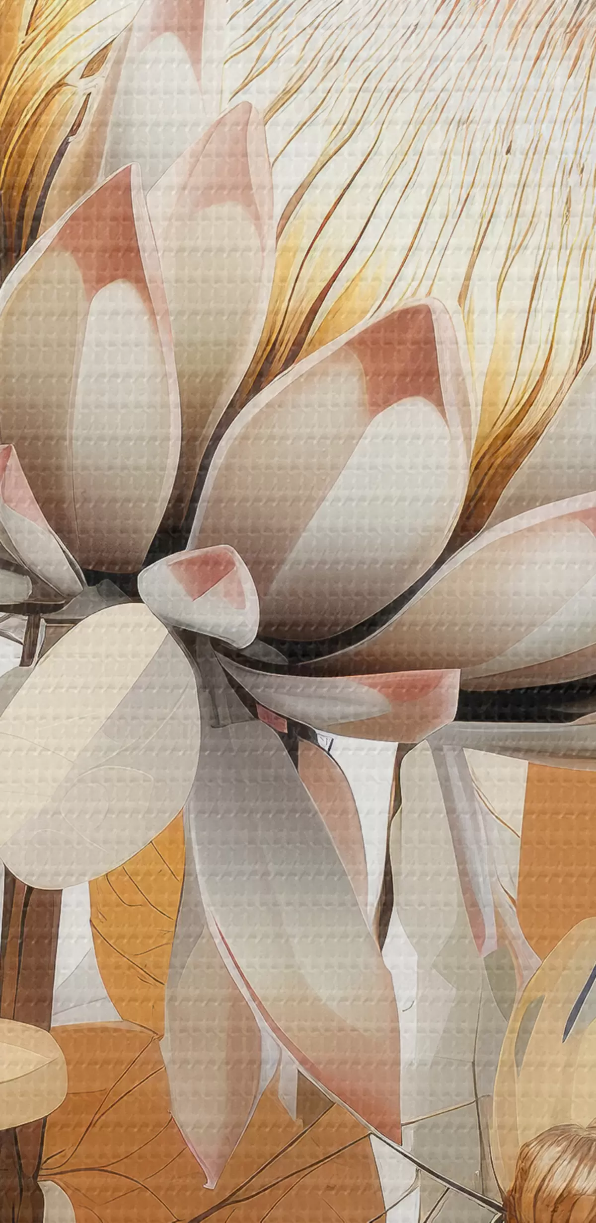 Obraz Krásné květy protey se svěžími listy, jemné béžové barvy, bavlna Č. s40817