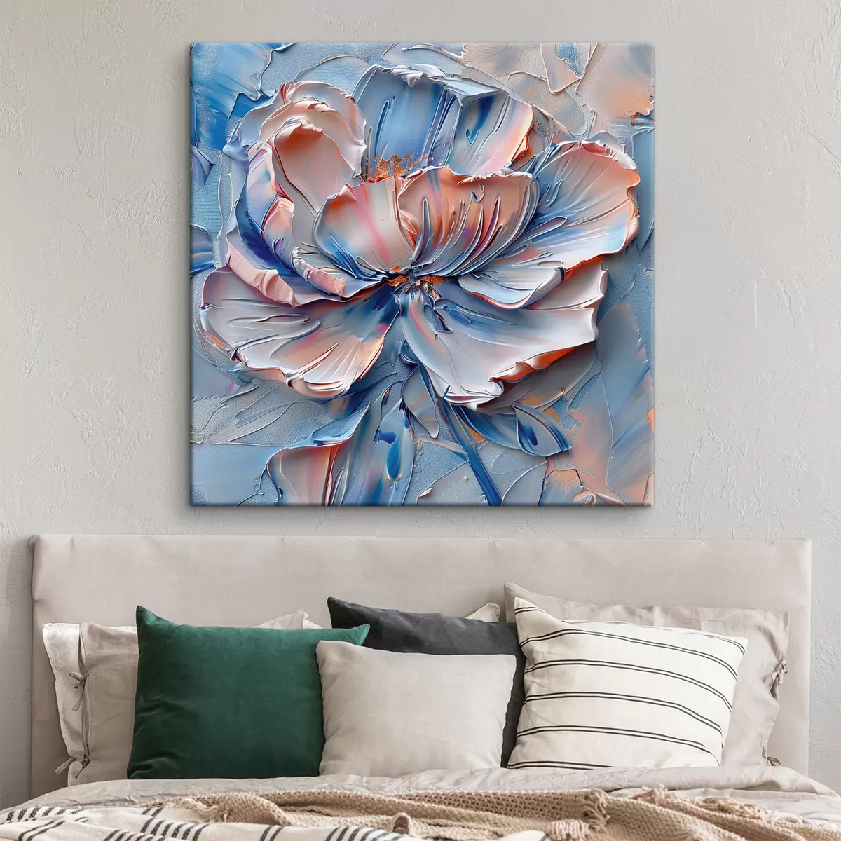 Obraz Velká květina s výraznými tahy štětcem v modré a broskvové barvě Č. s41004