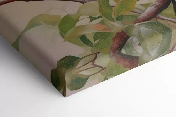 Obraz Papoušek makak sedící na větvi s růžovými květy Č. s41018