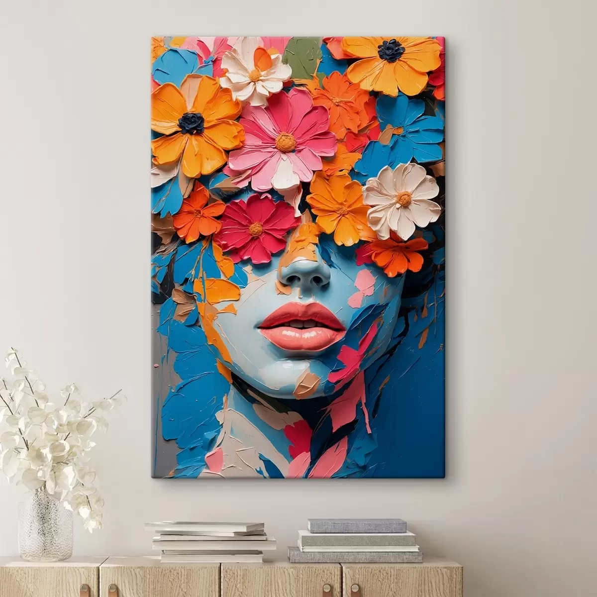 Obraz Dívčí obličej v oleji pokrytý květinami Č. s41023