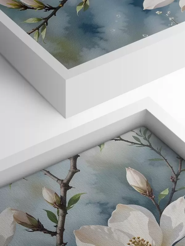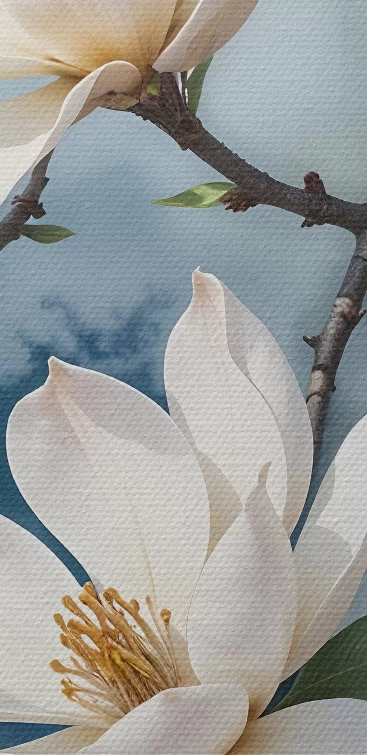 Obraz Bílé květy magnólie kvetoucí na větvích stromů na pozadí jemné akvarelové modré oblohy Č. s41081