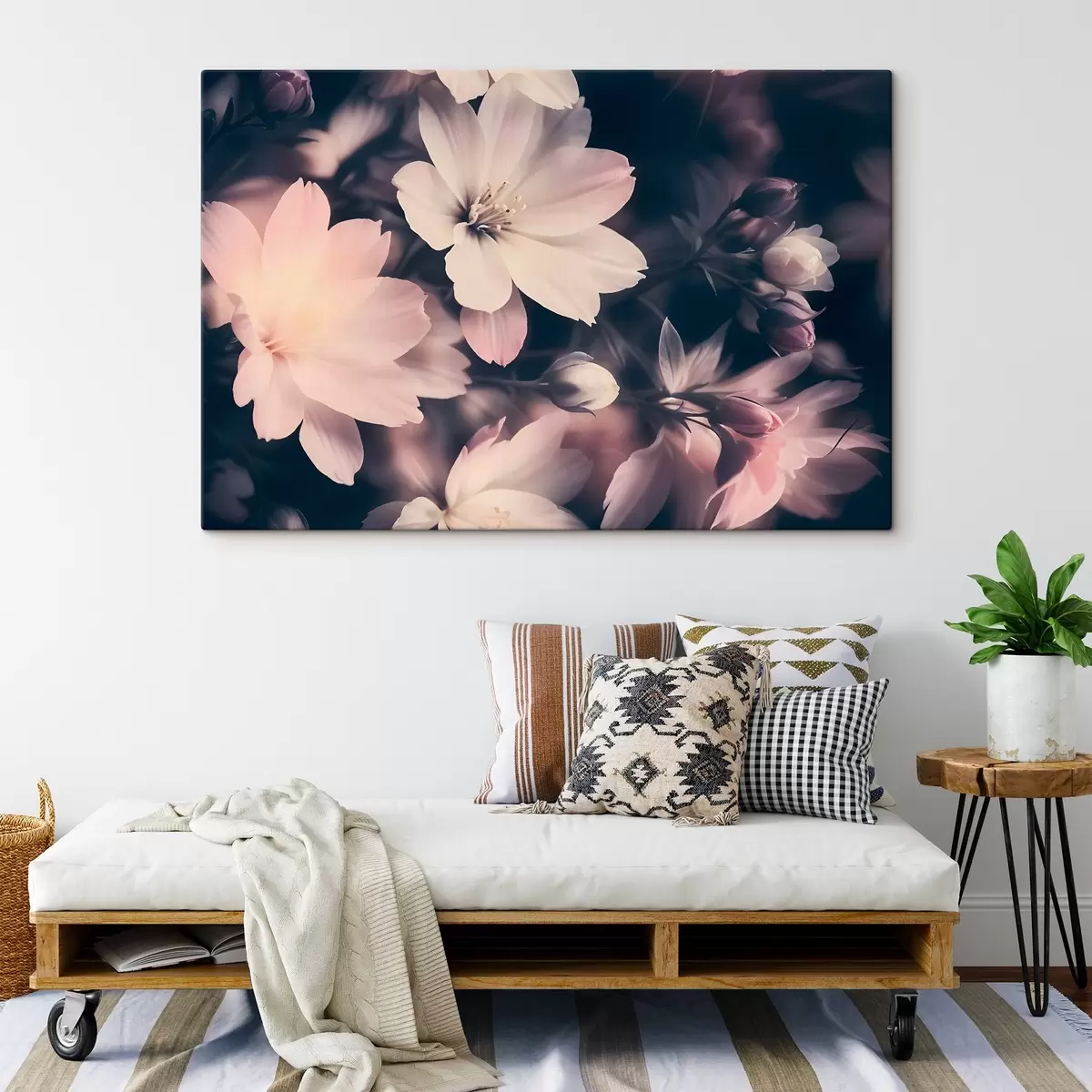Obraz Měkké růžové a bílé vintage světlé květiny s rozmazaným pozadím Č. s41084