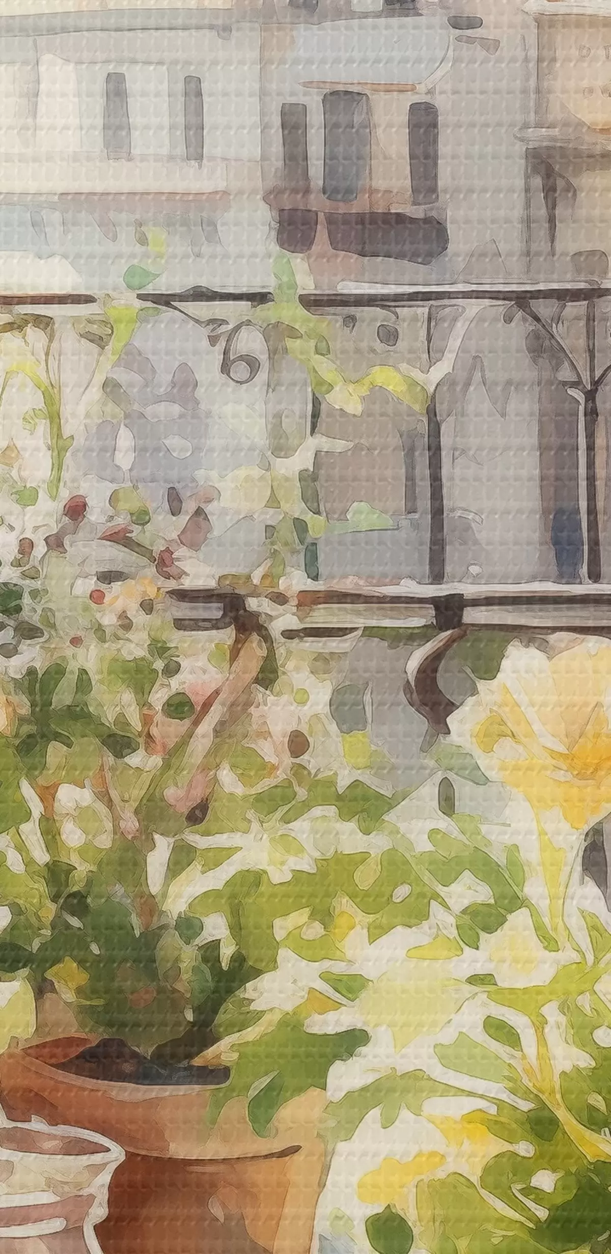Obraz Romantická večeře s výhledem na město, akvarel, květiny Č. s41168