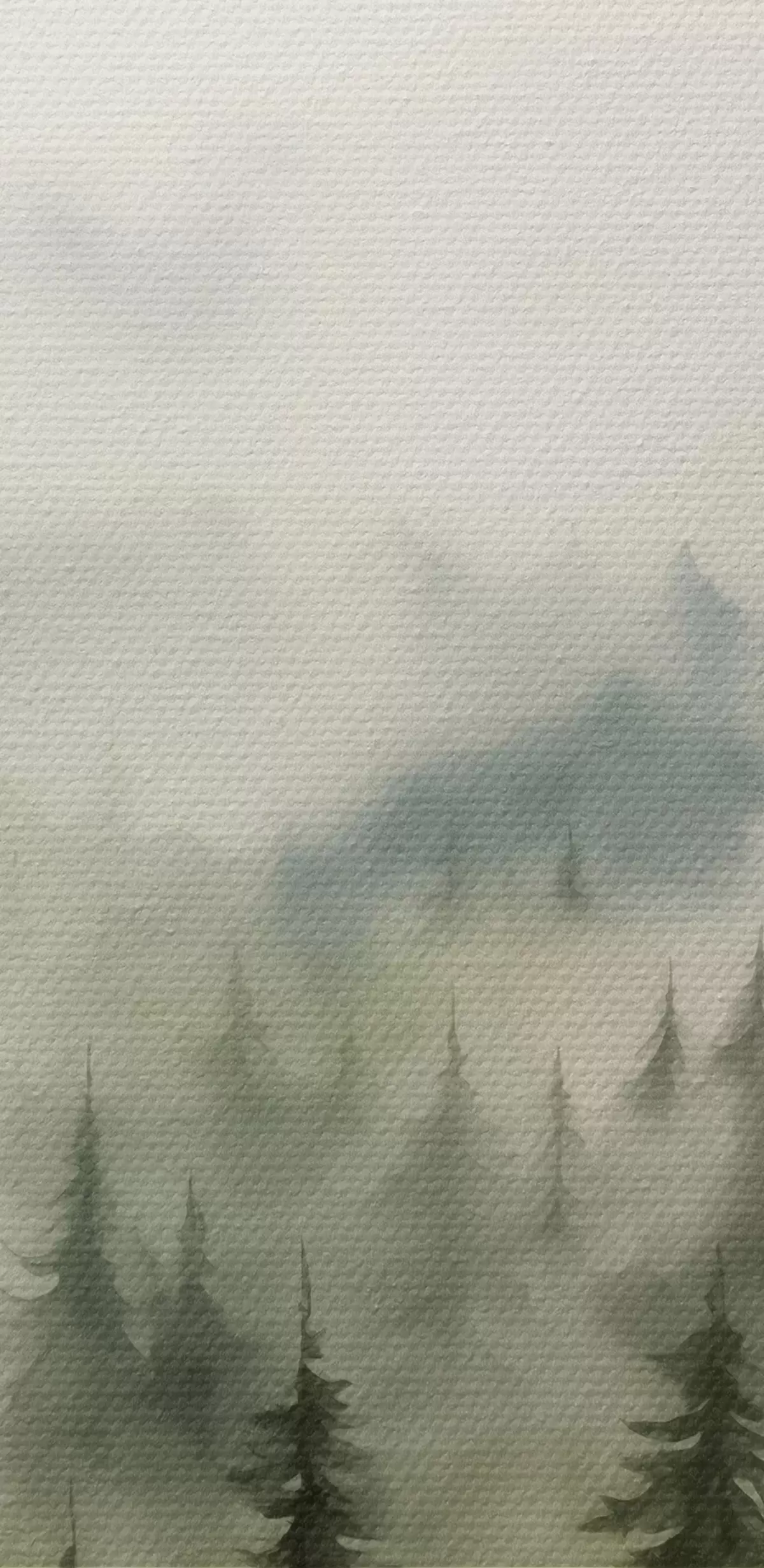 Obraz Zelený les na pozadí hor hory a mlha akvarel Č. s41241