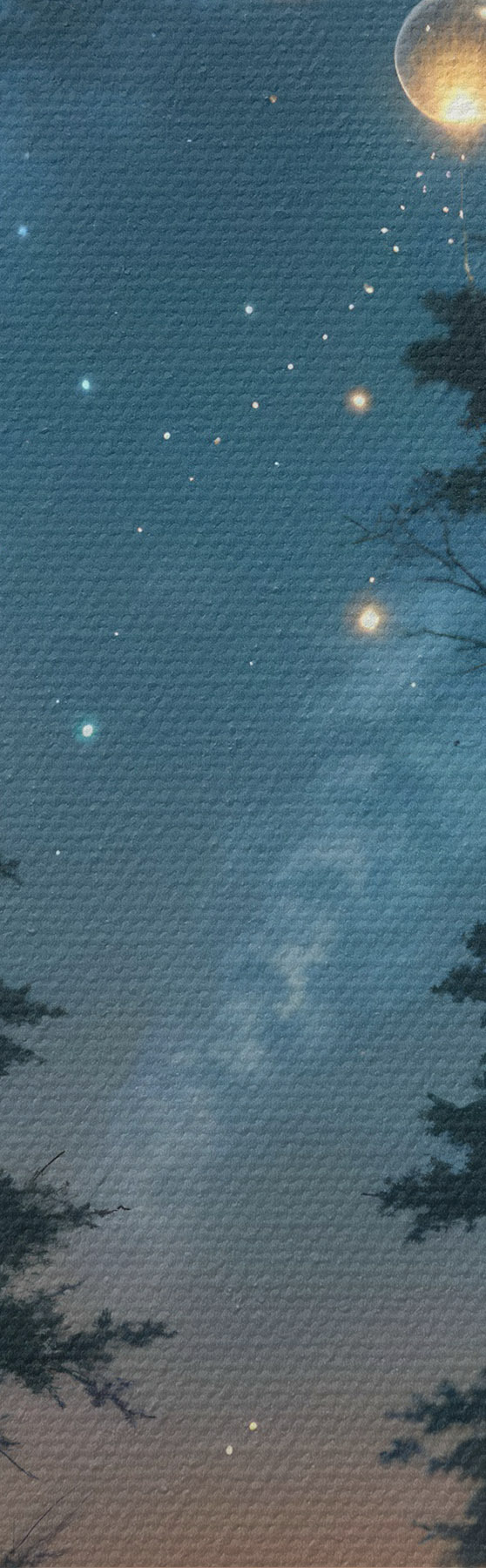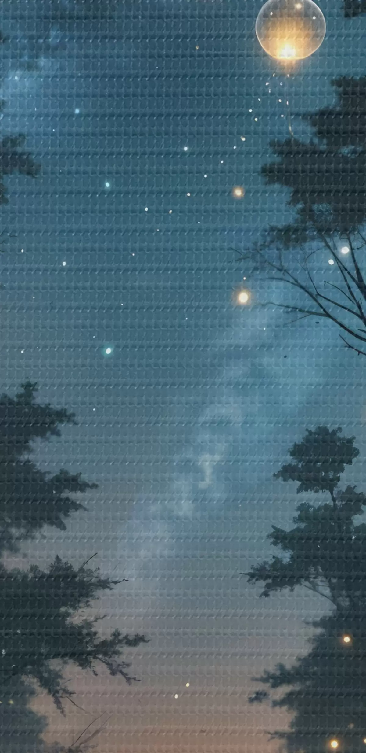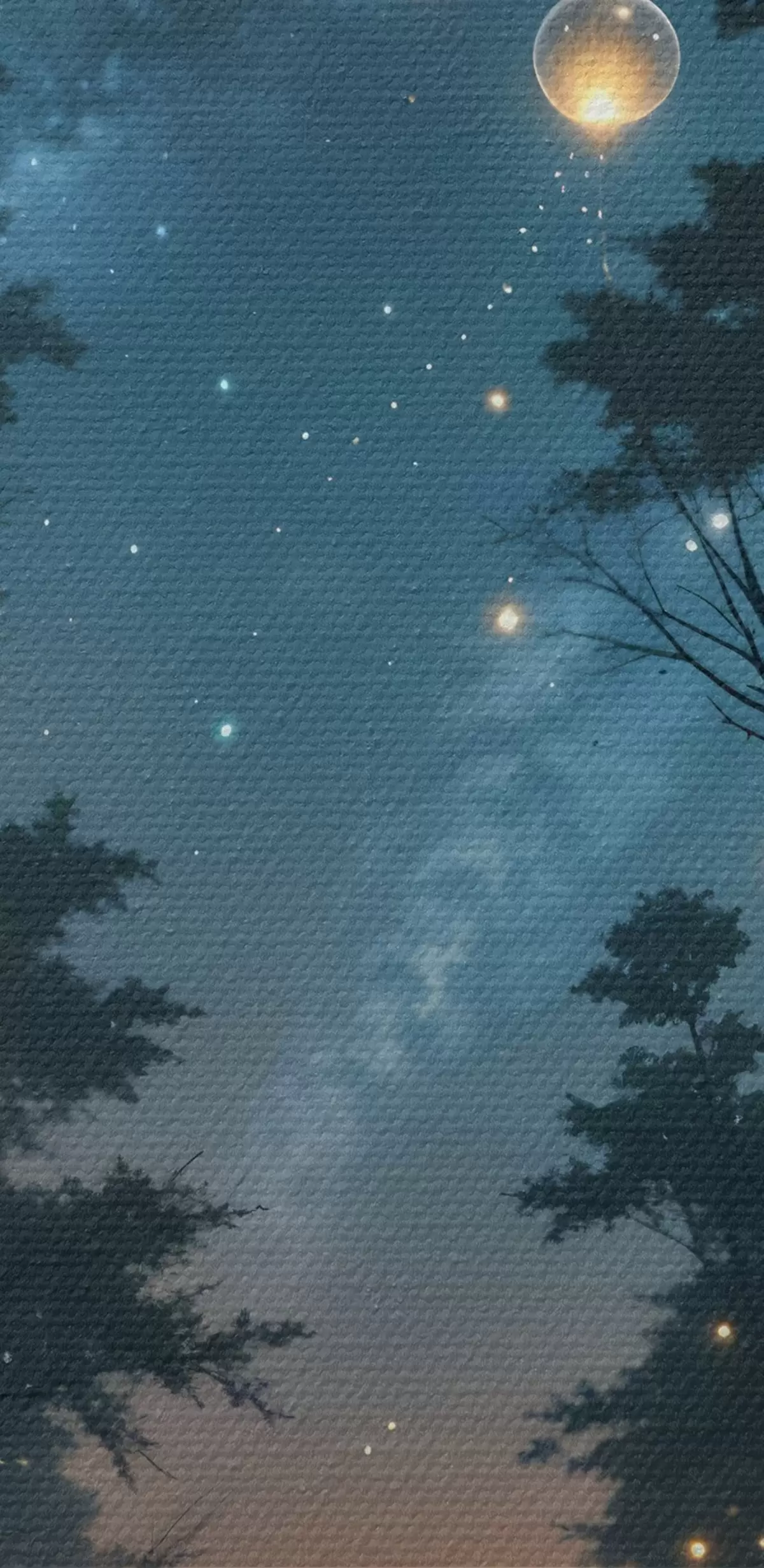 Obraz Kouzelný noční les se žlutými koulemi a světluškami, které se vznášejí mezi stromy a vytvářejí rozmarnou atmosféru Č. s41259