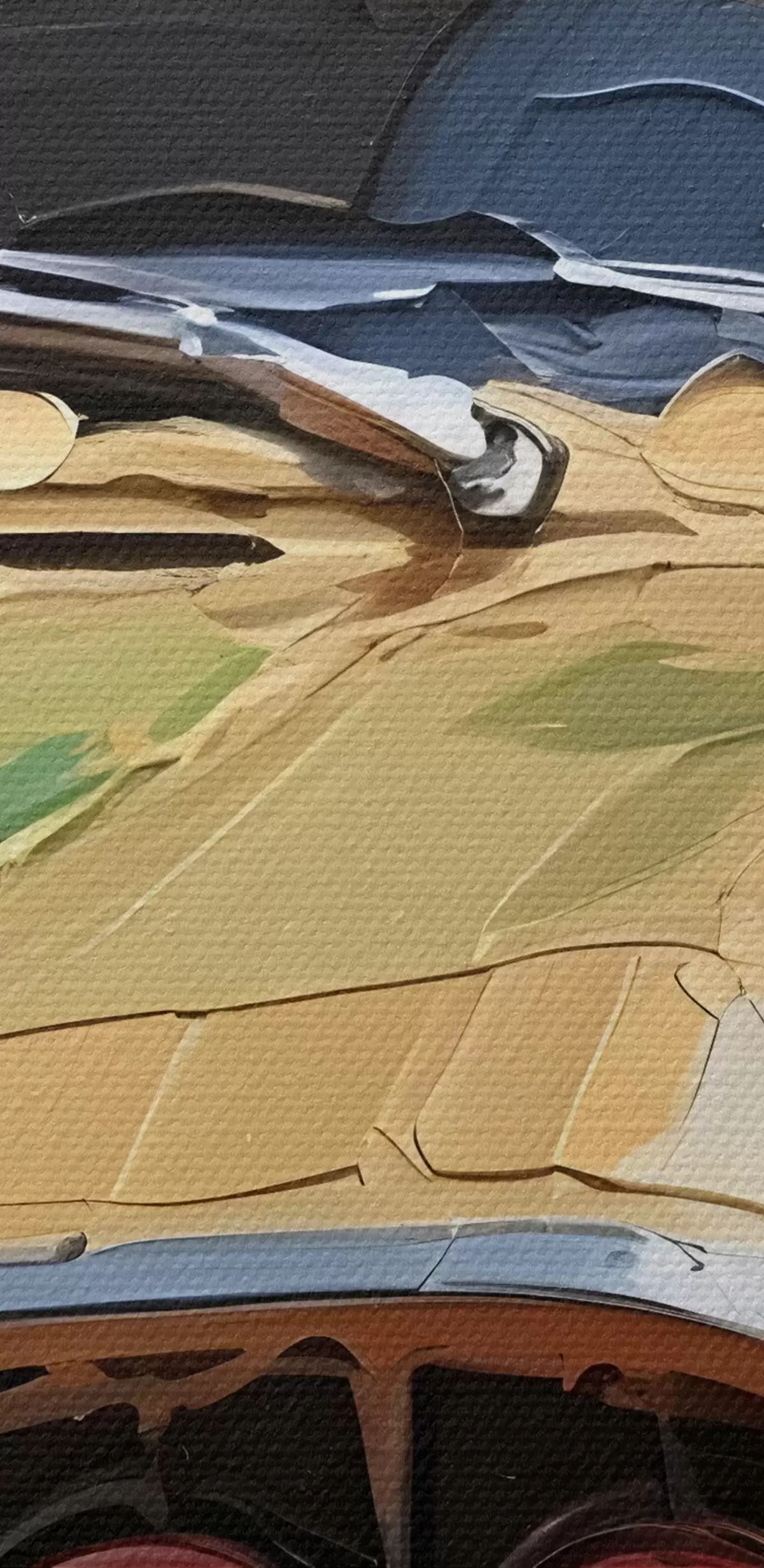 Obraz Imitace olejomalby impasto žlutého auta na barevném abstraktním pozadí Č. s41261