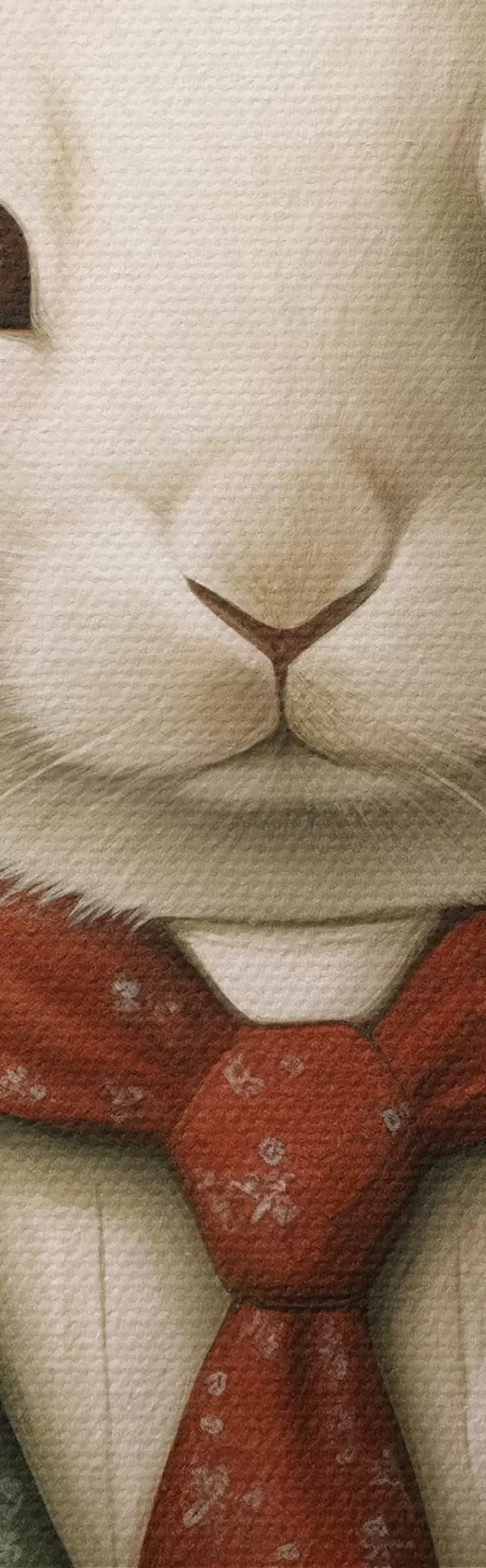 Obraz Bílý zajíc v zeleném obleku a červené kravatě ilustrační foto Č. s41278