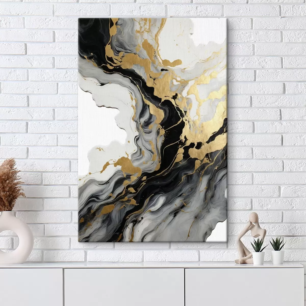 Obraz Abstraktní malba akvarelem s černými a žlutými barvami Č. s41290