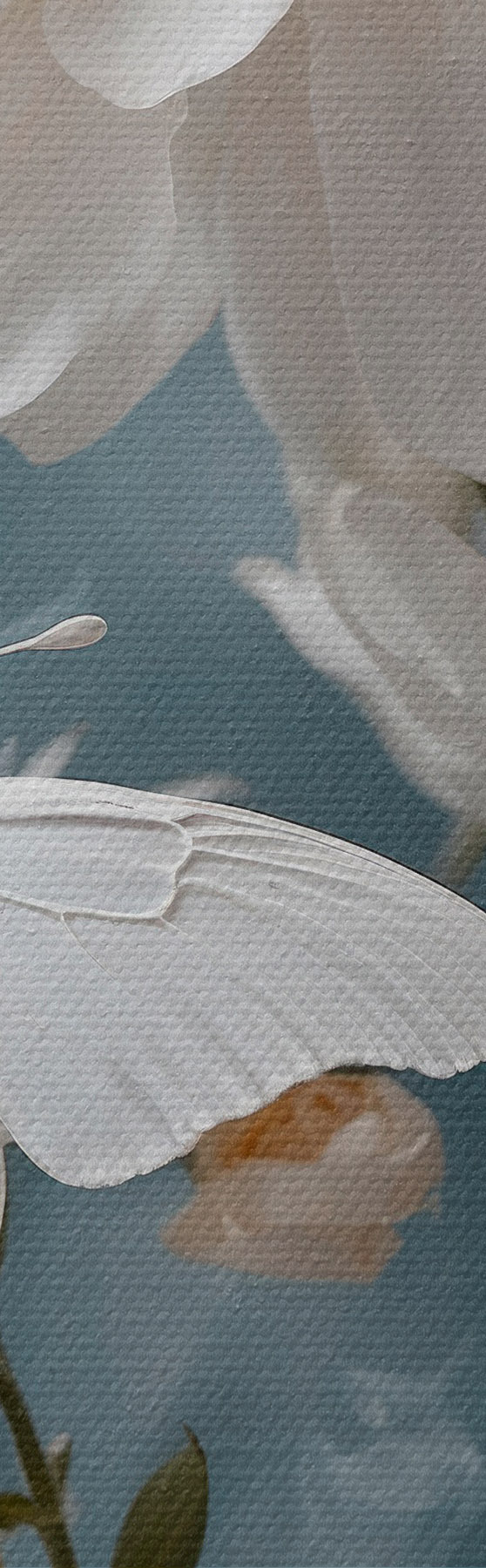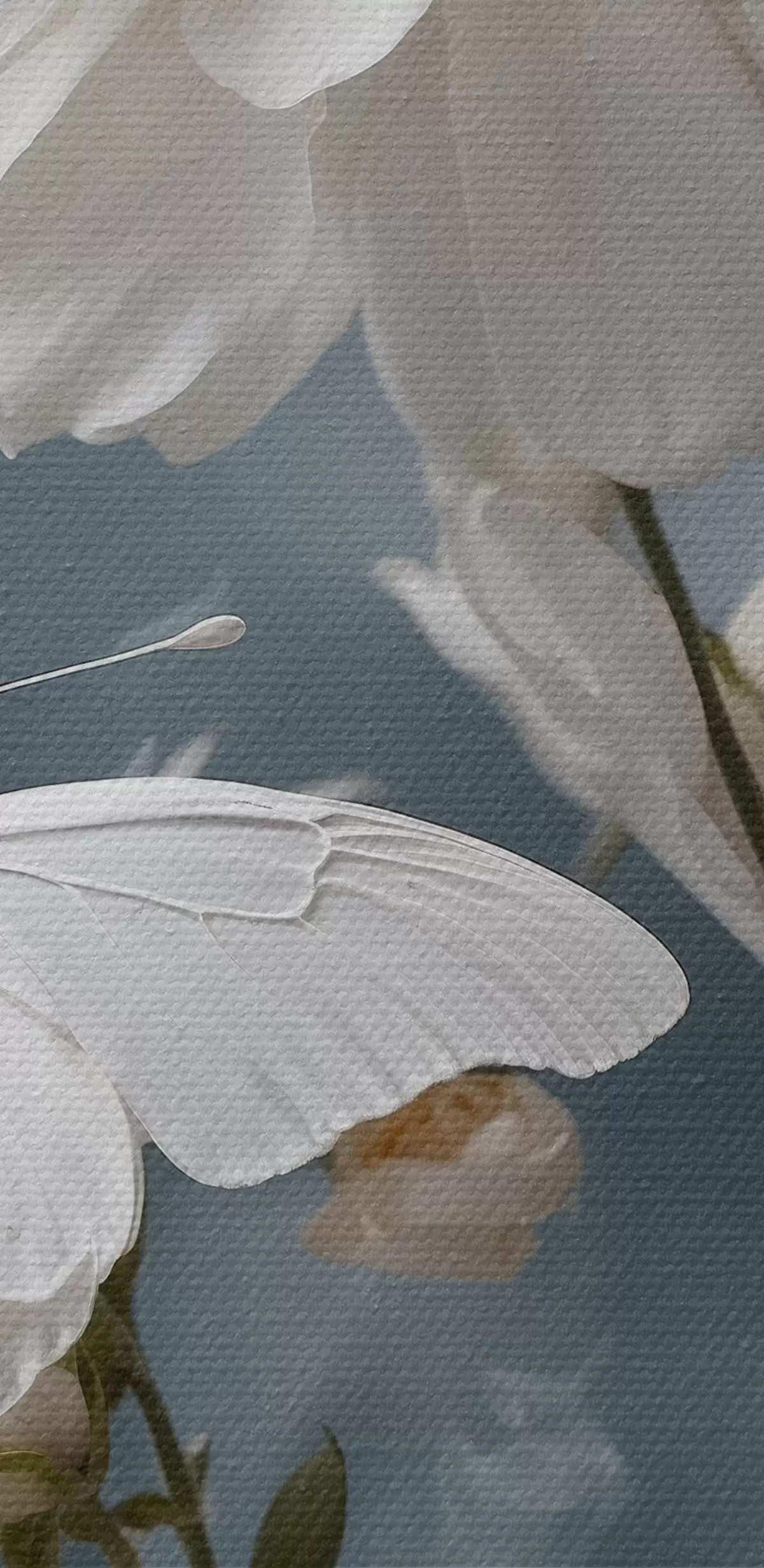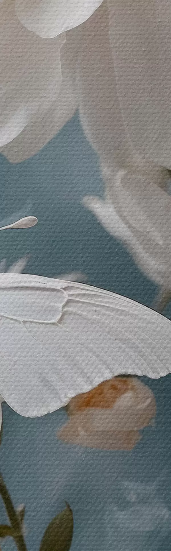 Obraz Bílé květy a motýl na rozmazaném pozadí Č. s41312