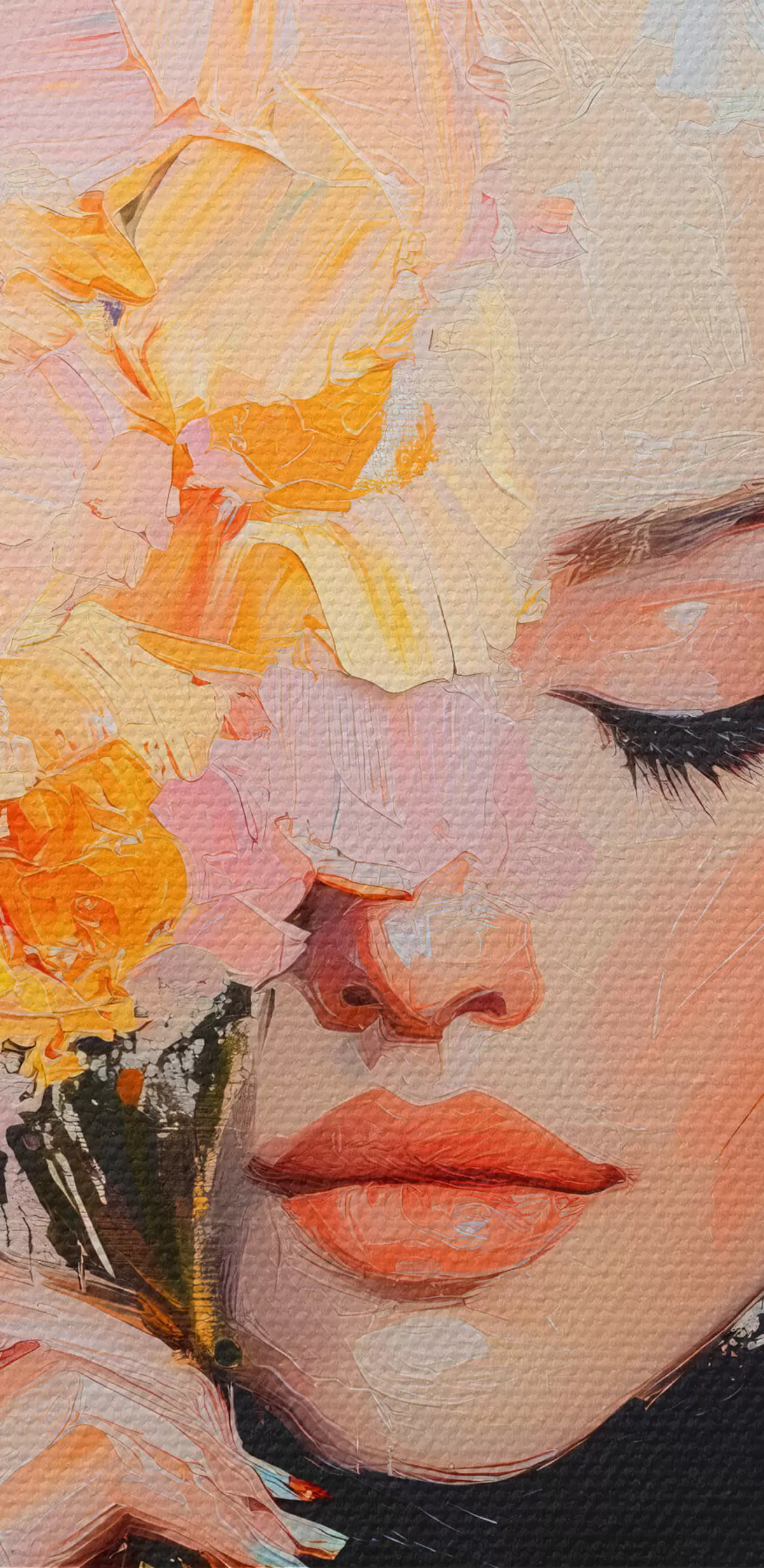 Obraz Abstraktní žena s kyticí květin v rukou s tahy štětce Č. s41355