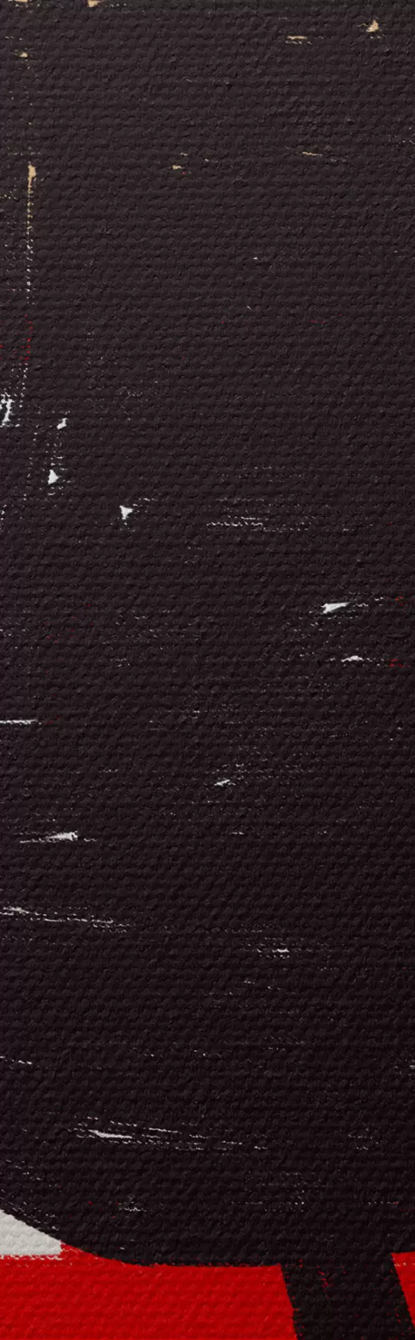 Obraz Černá kočka sedící na červené židli na béžovém pozadí, hrubé tahy, imitace malby Č. s41612