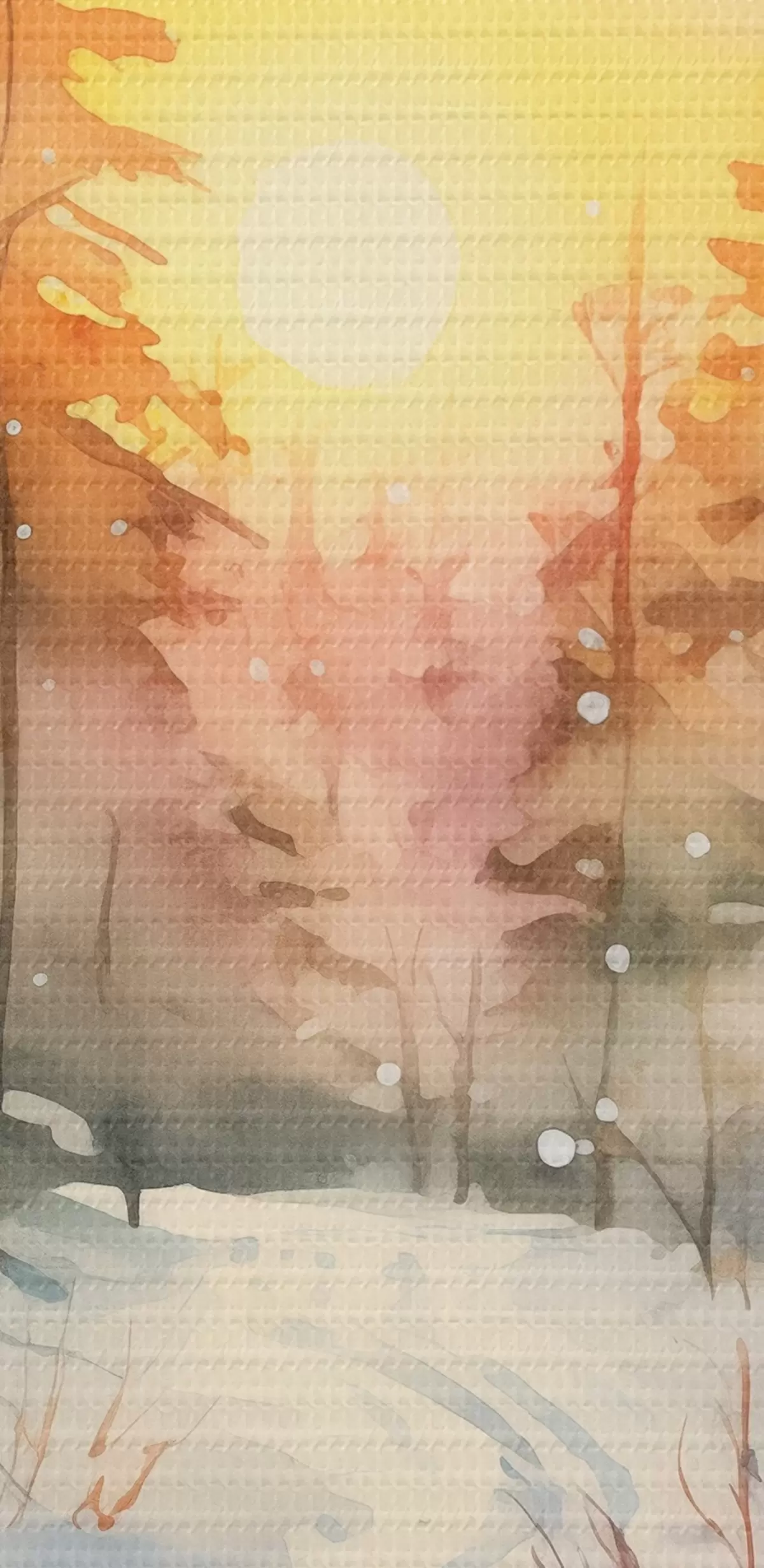 Obraz Akvarel zimní les, sněhové vločky, krásná obloha, západ slunce Č. s41640