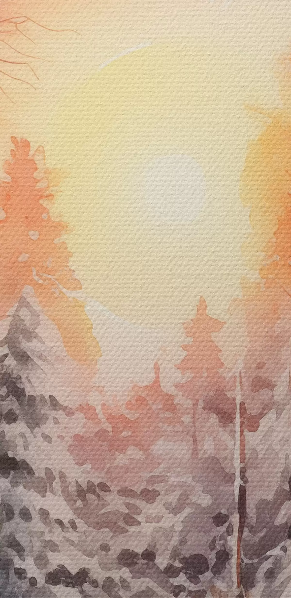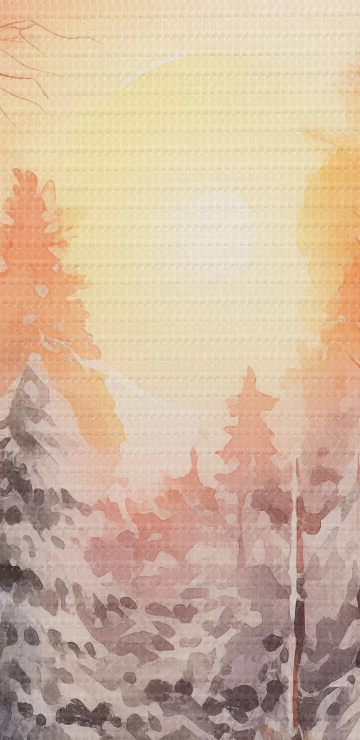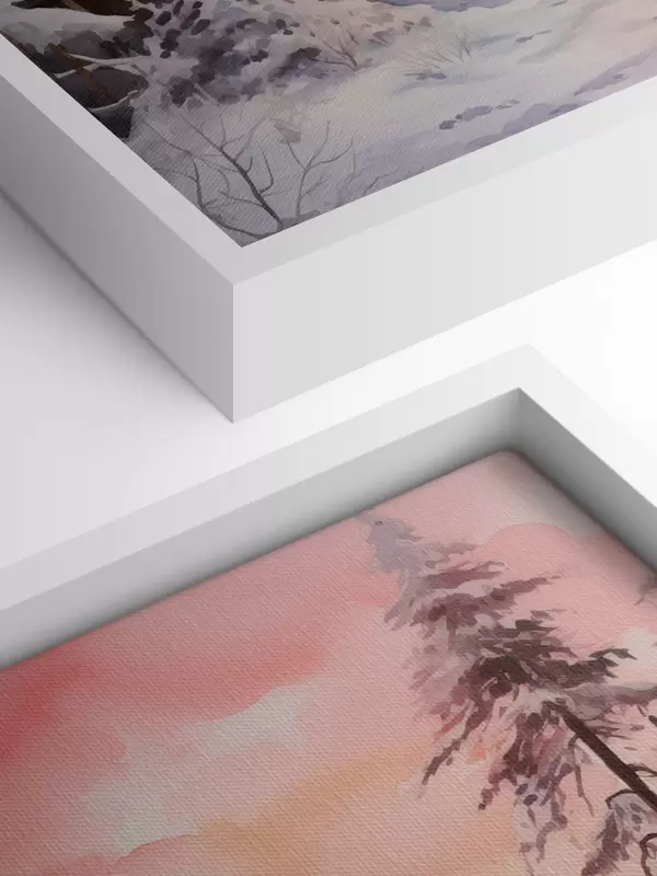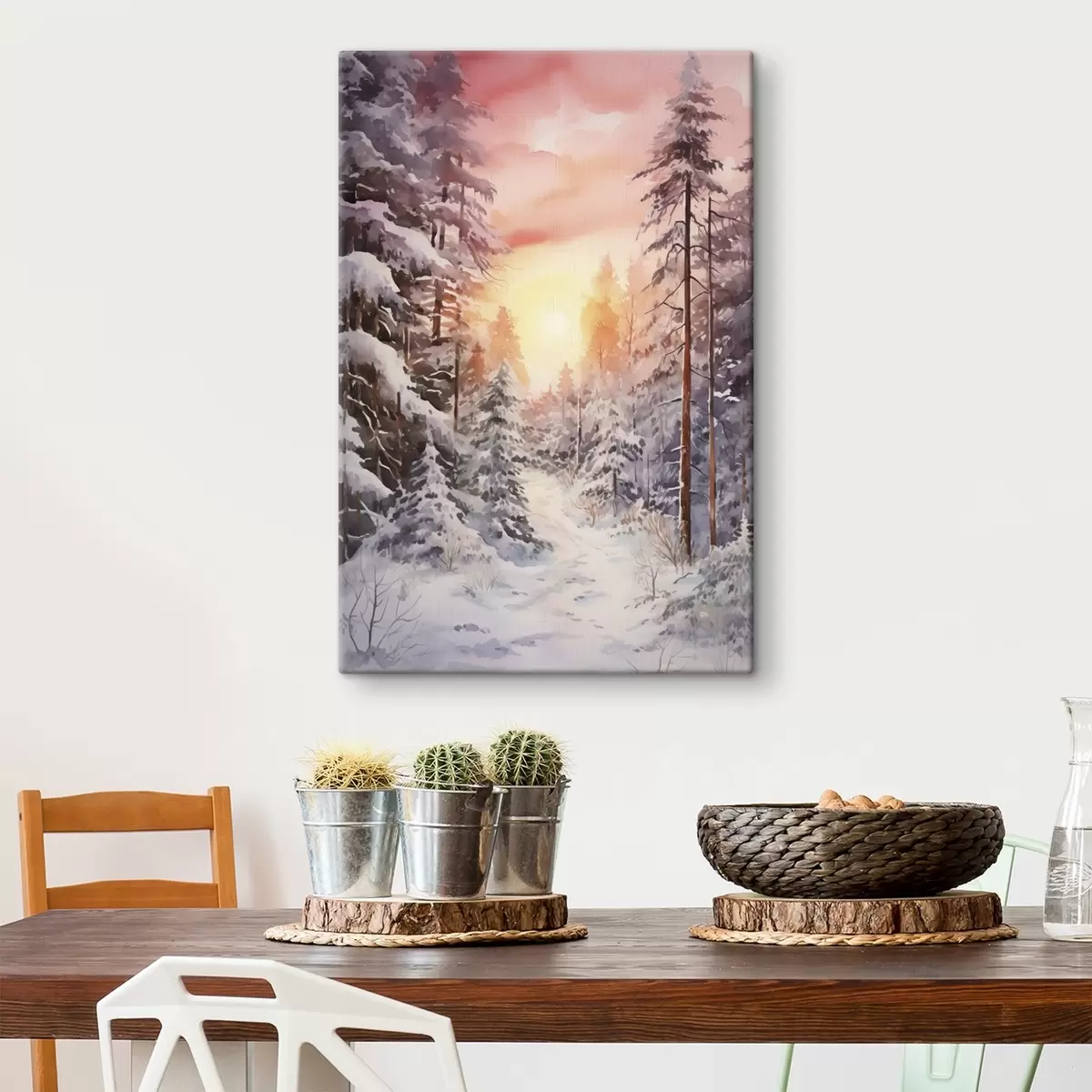 Obraz Krásná zima, akvarel les, zasněžené, stromy, růžová obloha, západ slunce Č. s41641