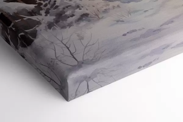 Obraz Krásná zima, akvarel les, zasněžené, stromy, růžová obloha, západ slunce Č. s41641