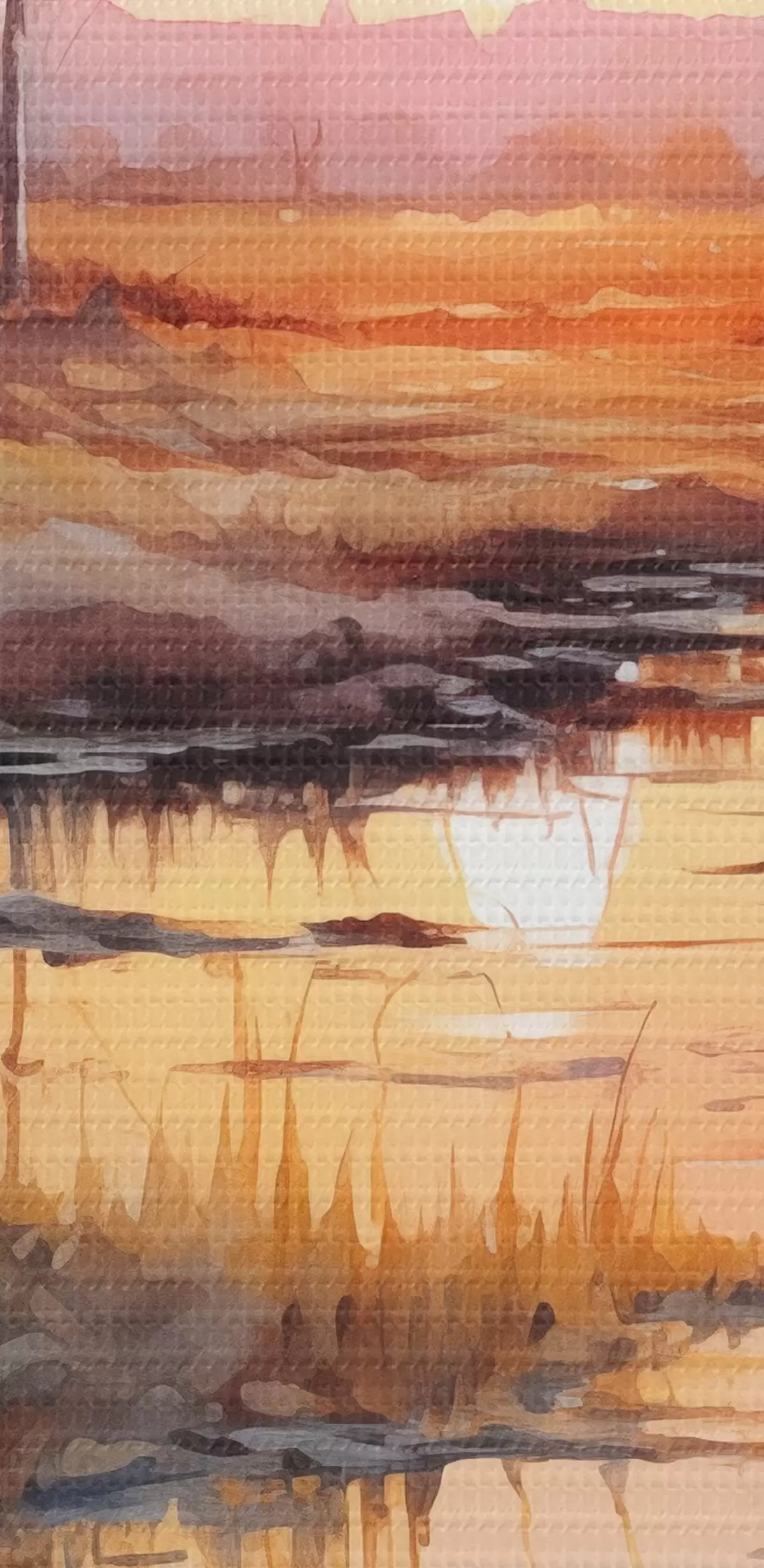 Obraz Krásná řeka v podzimním lese, akvarel, louka, obloha při západu slunce Č. s41643