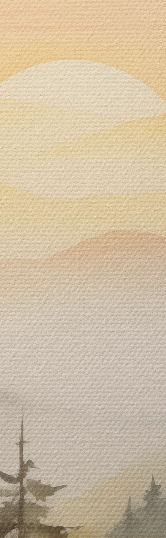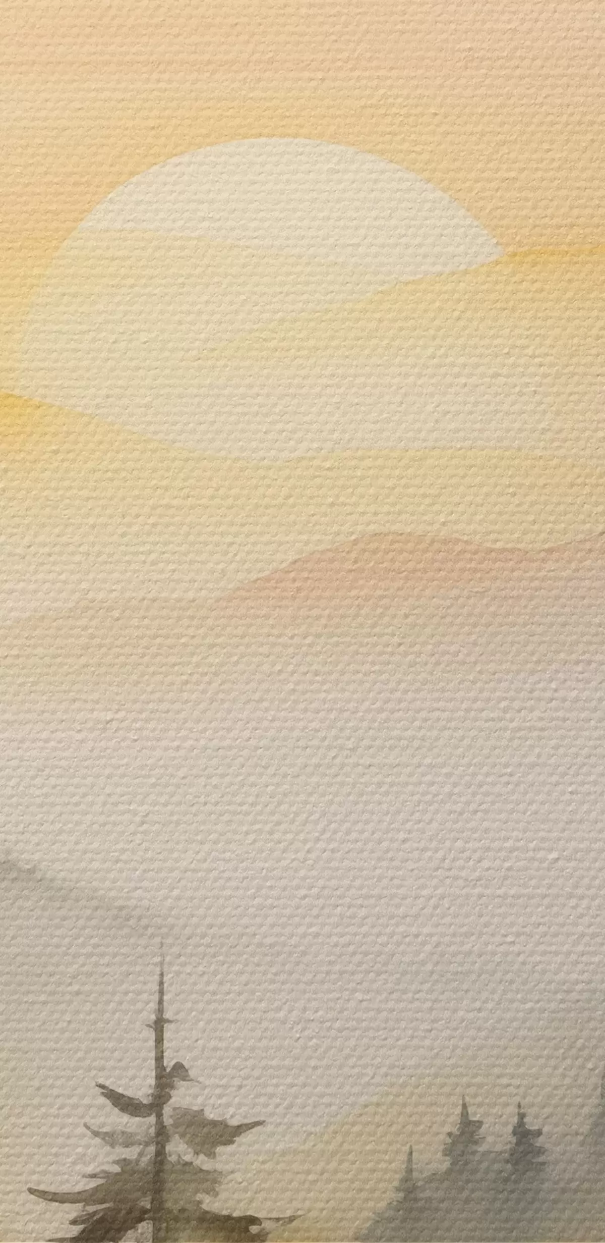 Obraz Podzimní horská krajina, borový les, západ slunce, akvarel Č. s41645