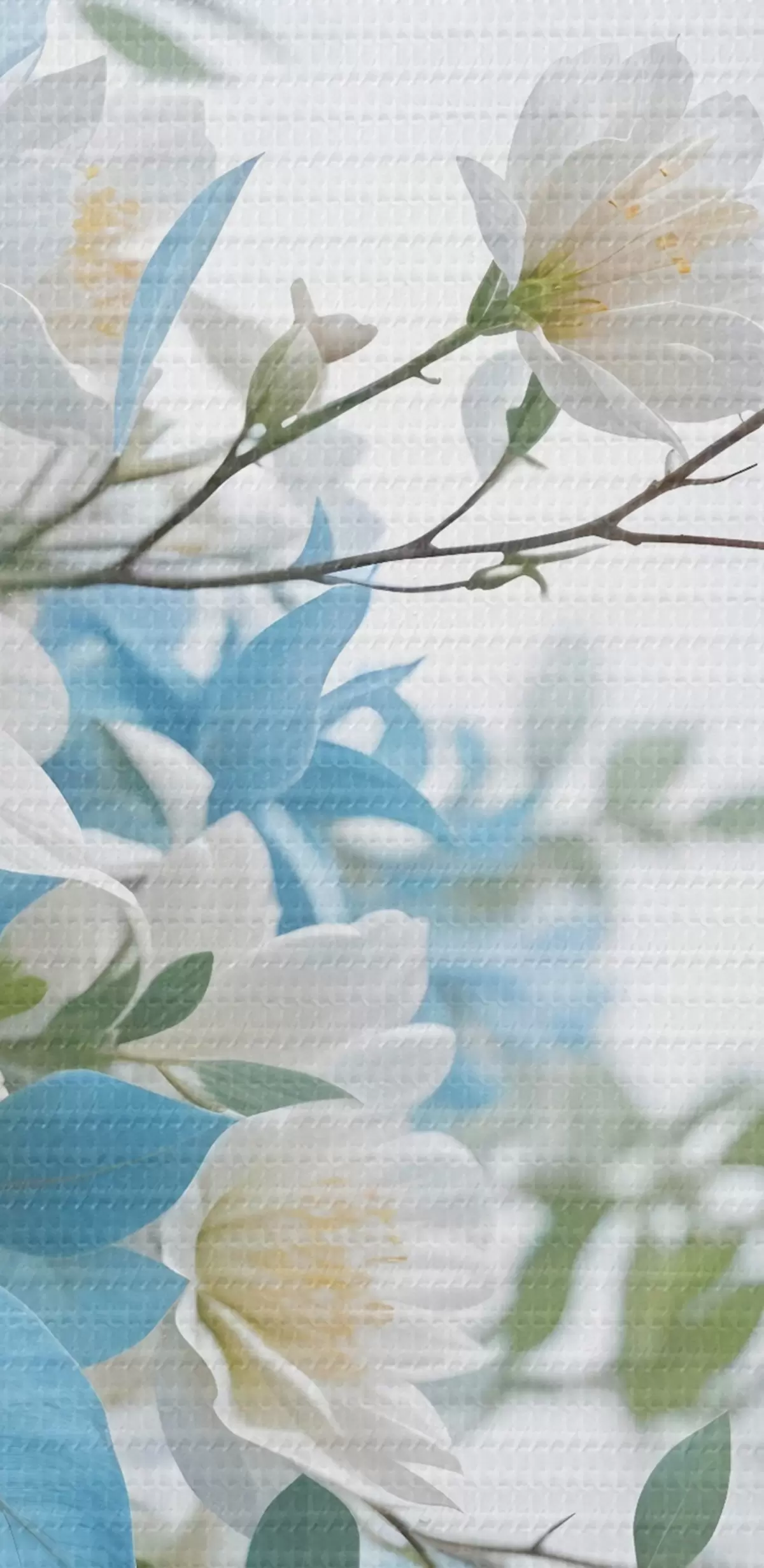 Obraz Kytice bílých a modrých květů se zelenými listy na jemném rozostřeném pozadí Č. s41715