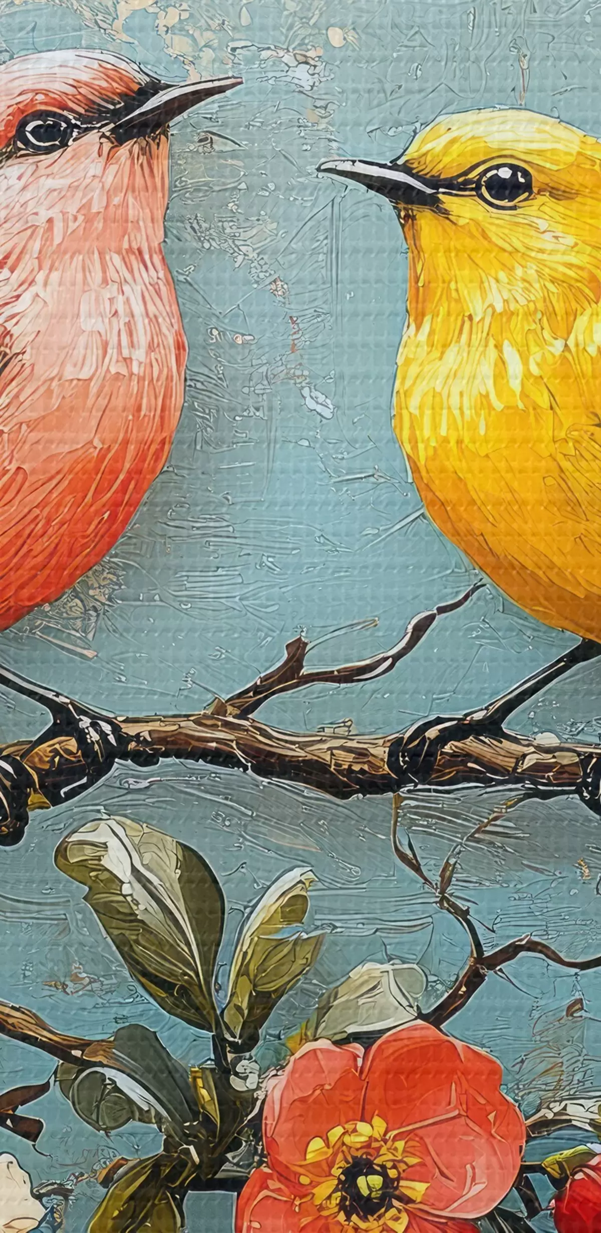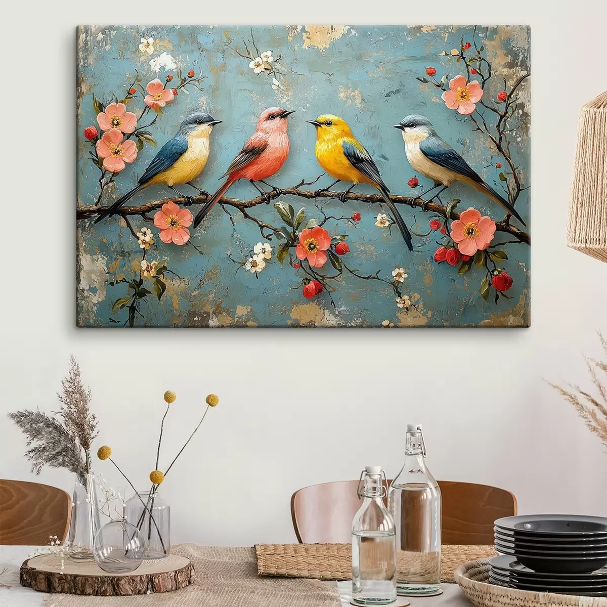 Obraz Ptáci na větvi sakury ve stylu olejomalby Č. s41834