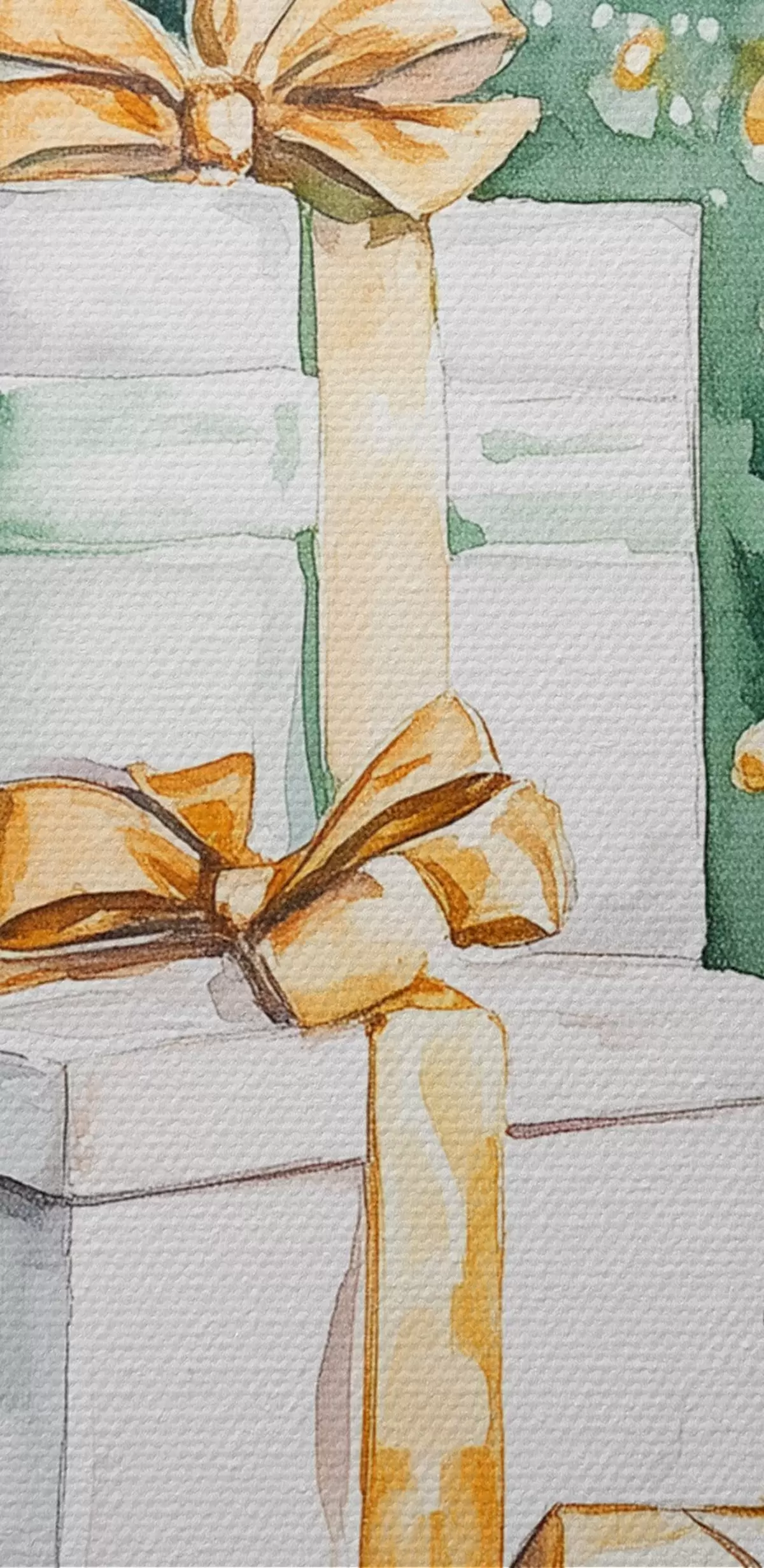 Obraz Vánoční stromek se zabalenými dárky, akvarelový styl, slavnostní Č. s41944
