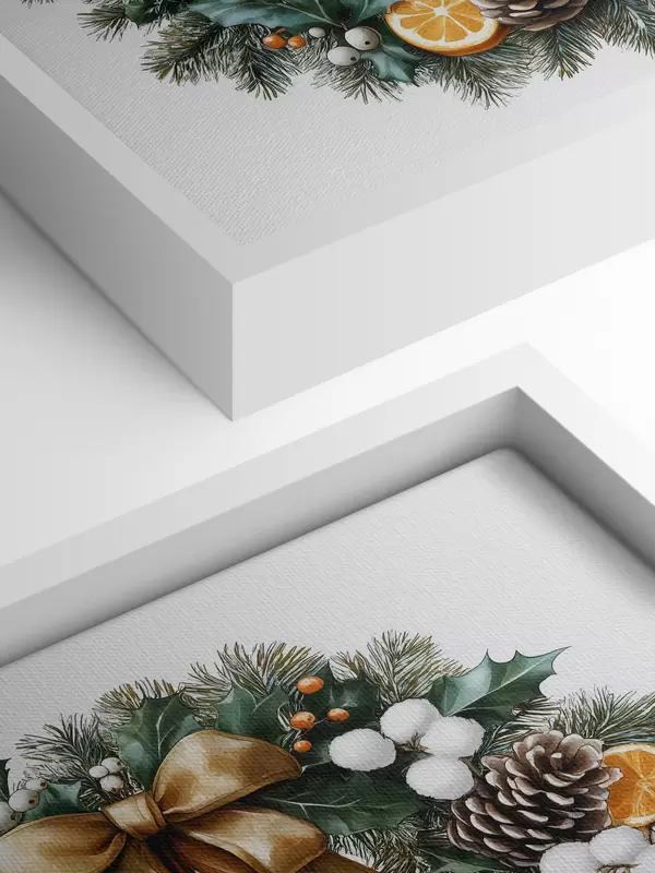 Obraz Vánoční borovicový věnec s mašlí, bavlnou, pomeranči, bobulemi a šiškami Č. s41962