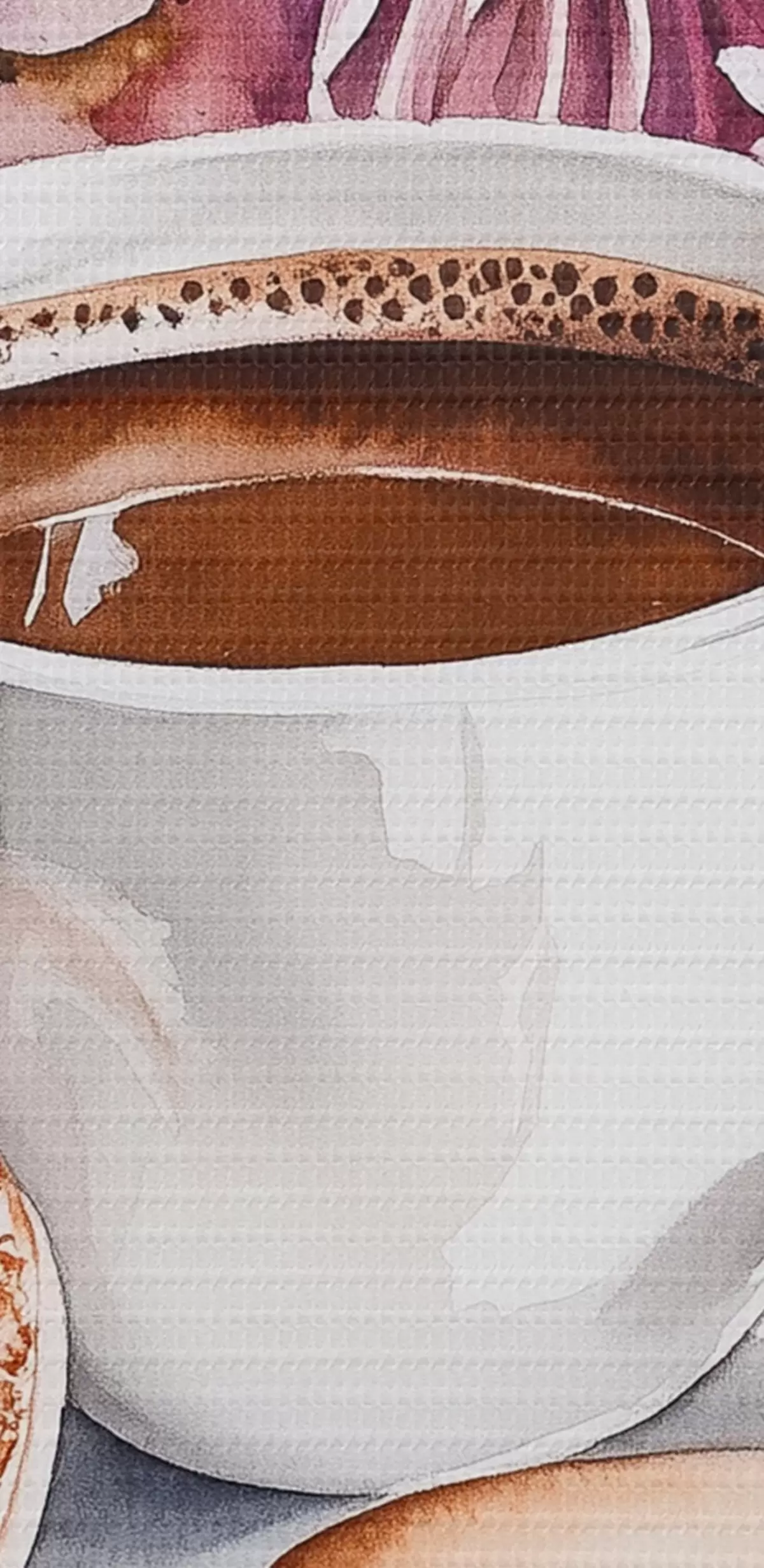 Obraz Šálek kávy s makronkami, růžové květy, akvarel, kávová zrna Č. s41963