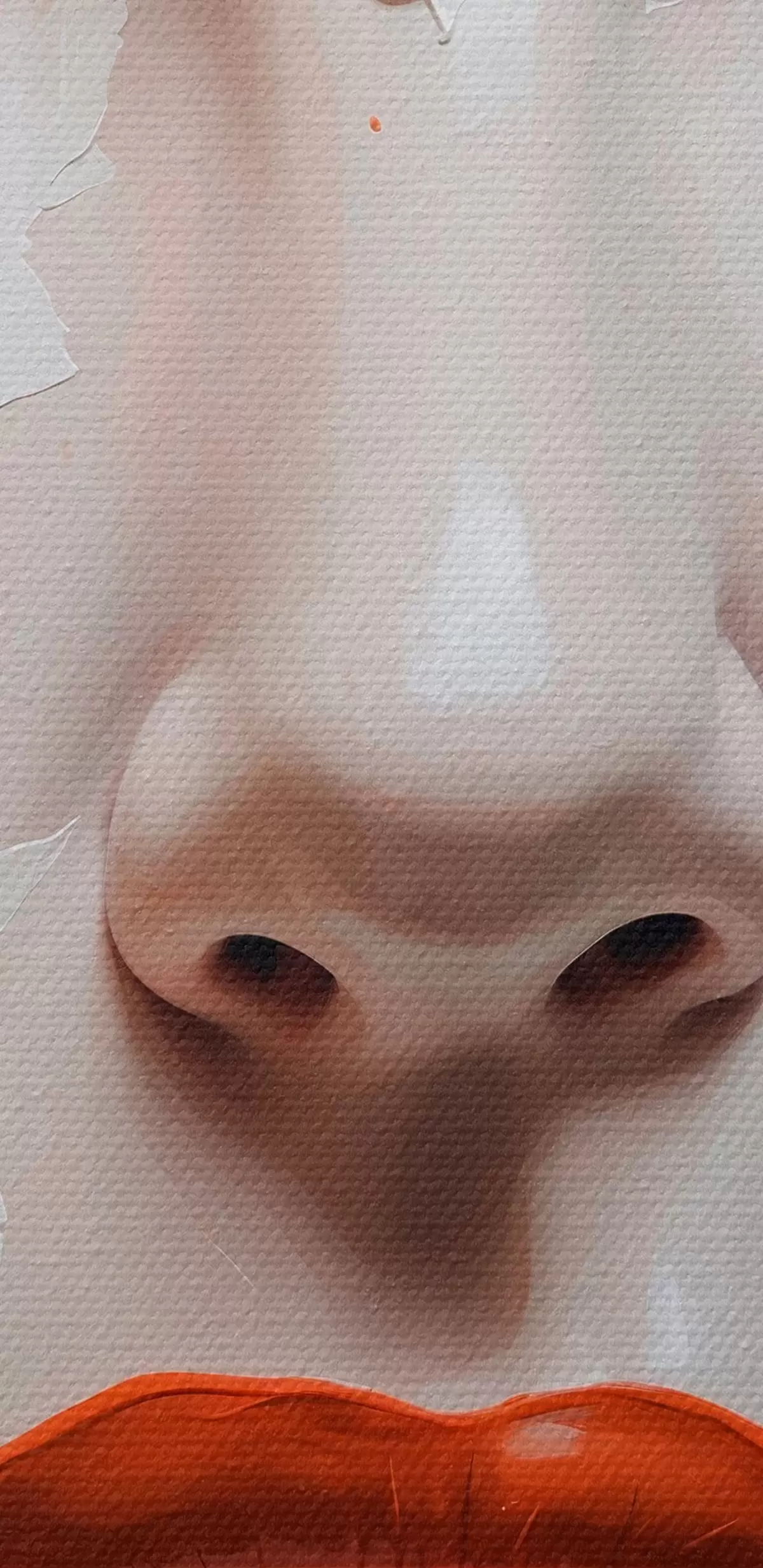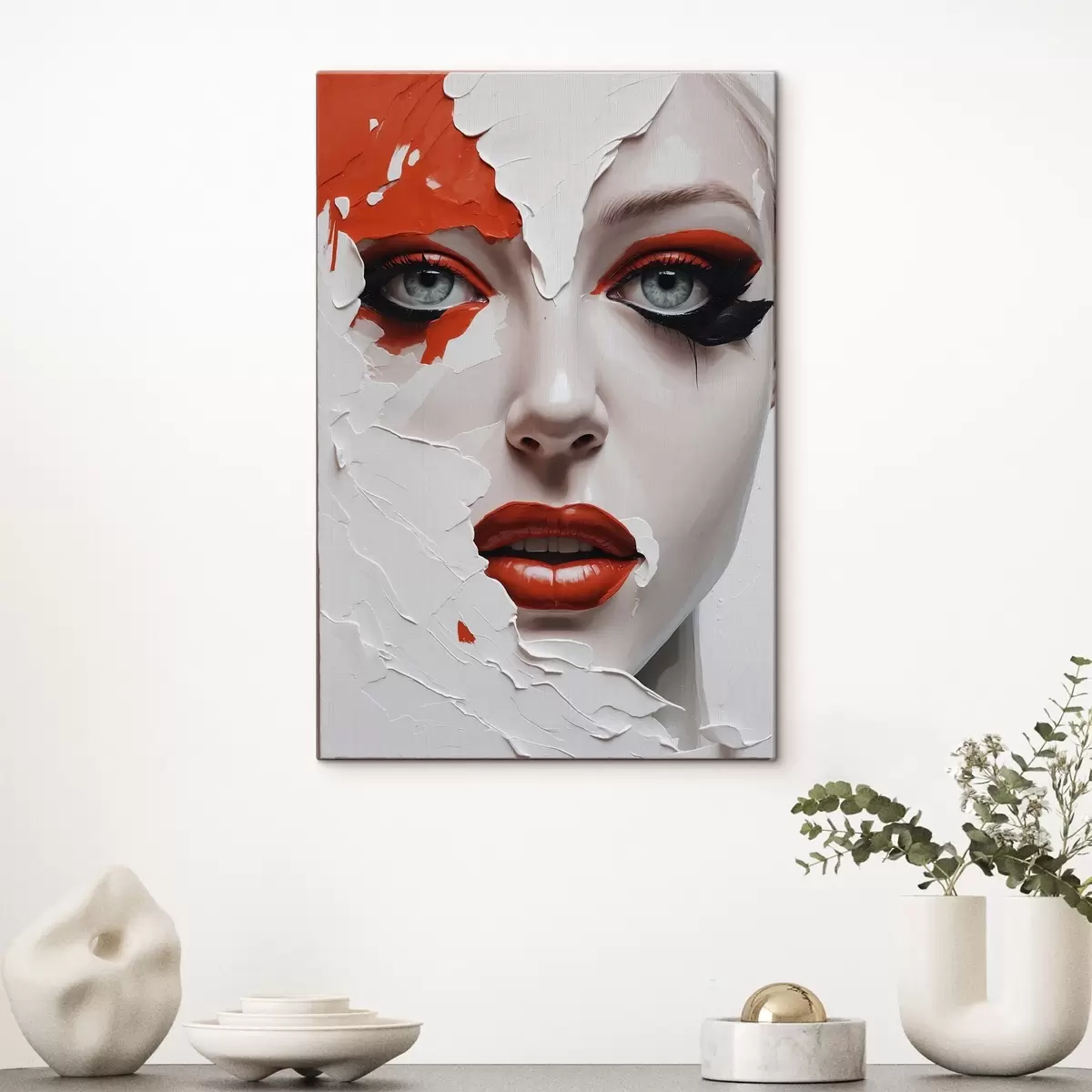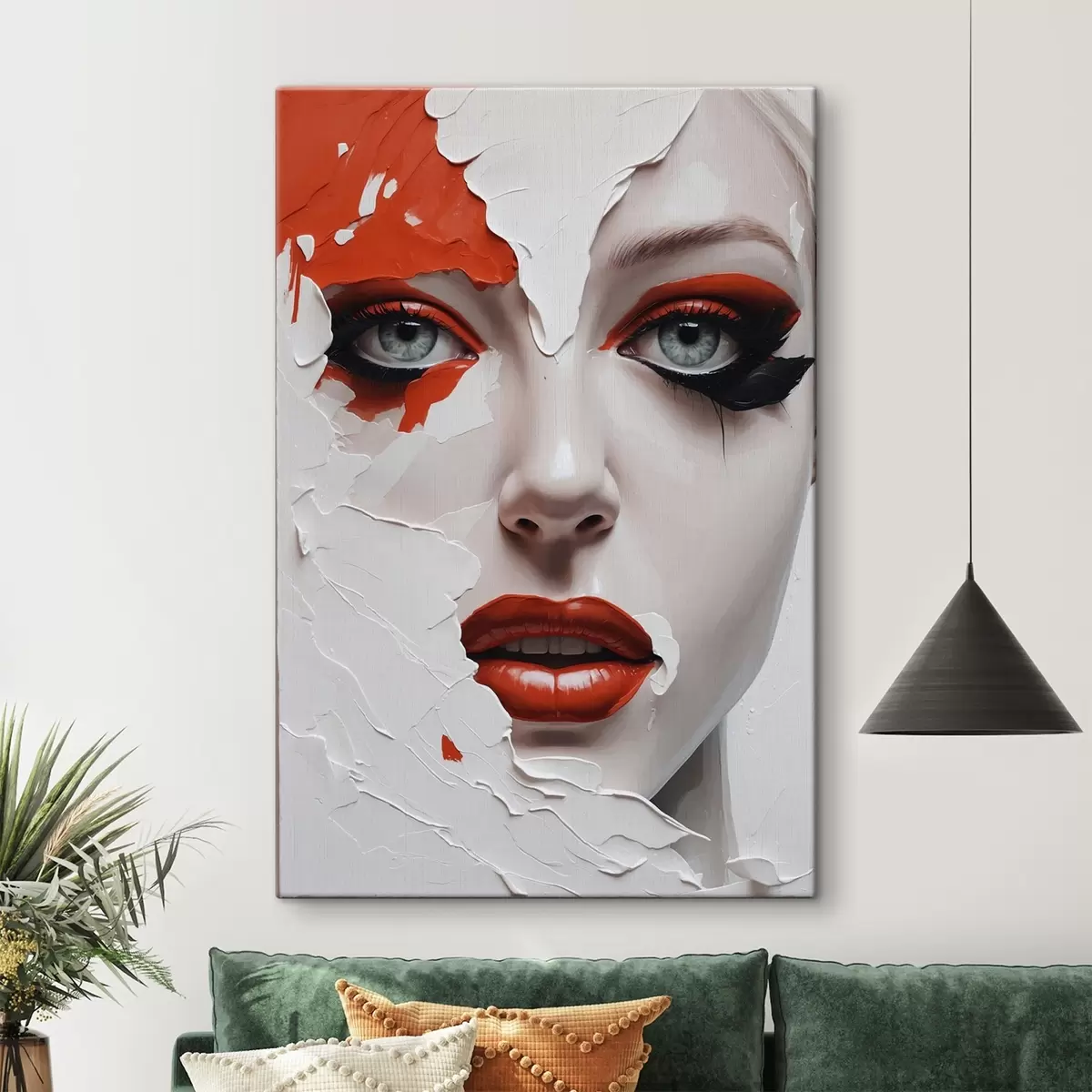 Obraz Dívčí obličej v bílé a oranžové barvě Č. s42092