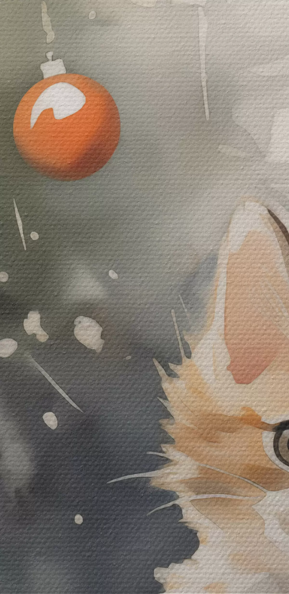 Obraz Koťátko u vánočního stromku imitace mokrého akvarelu Č. s42140