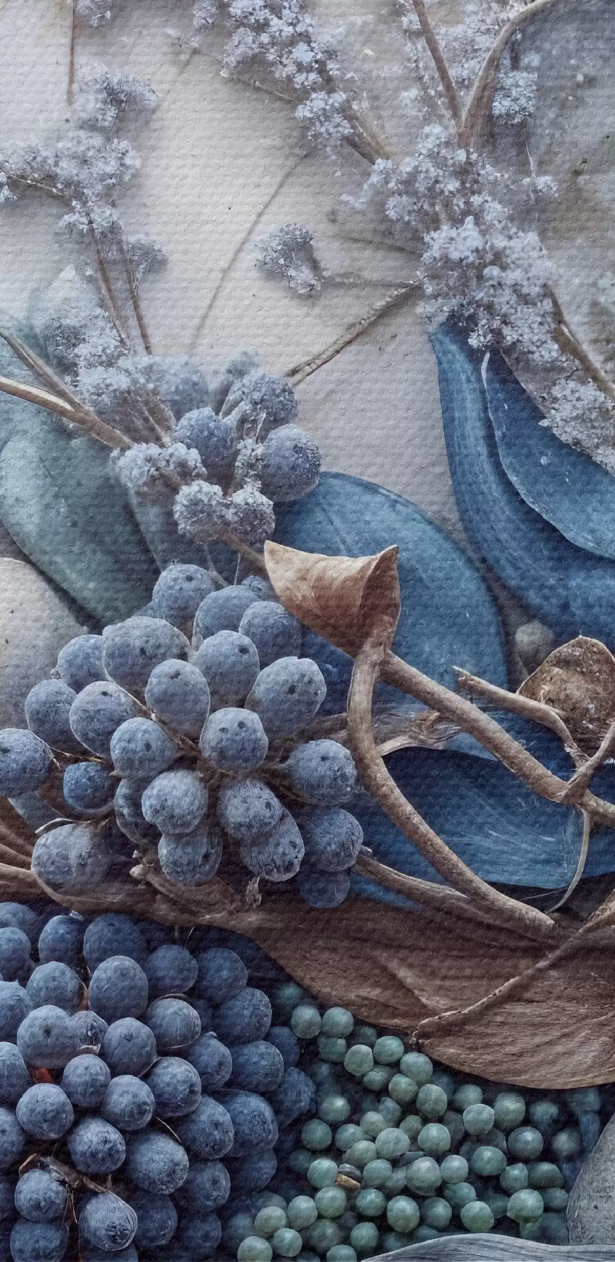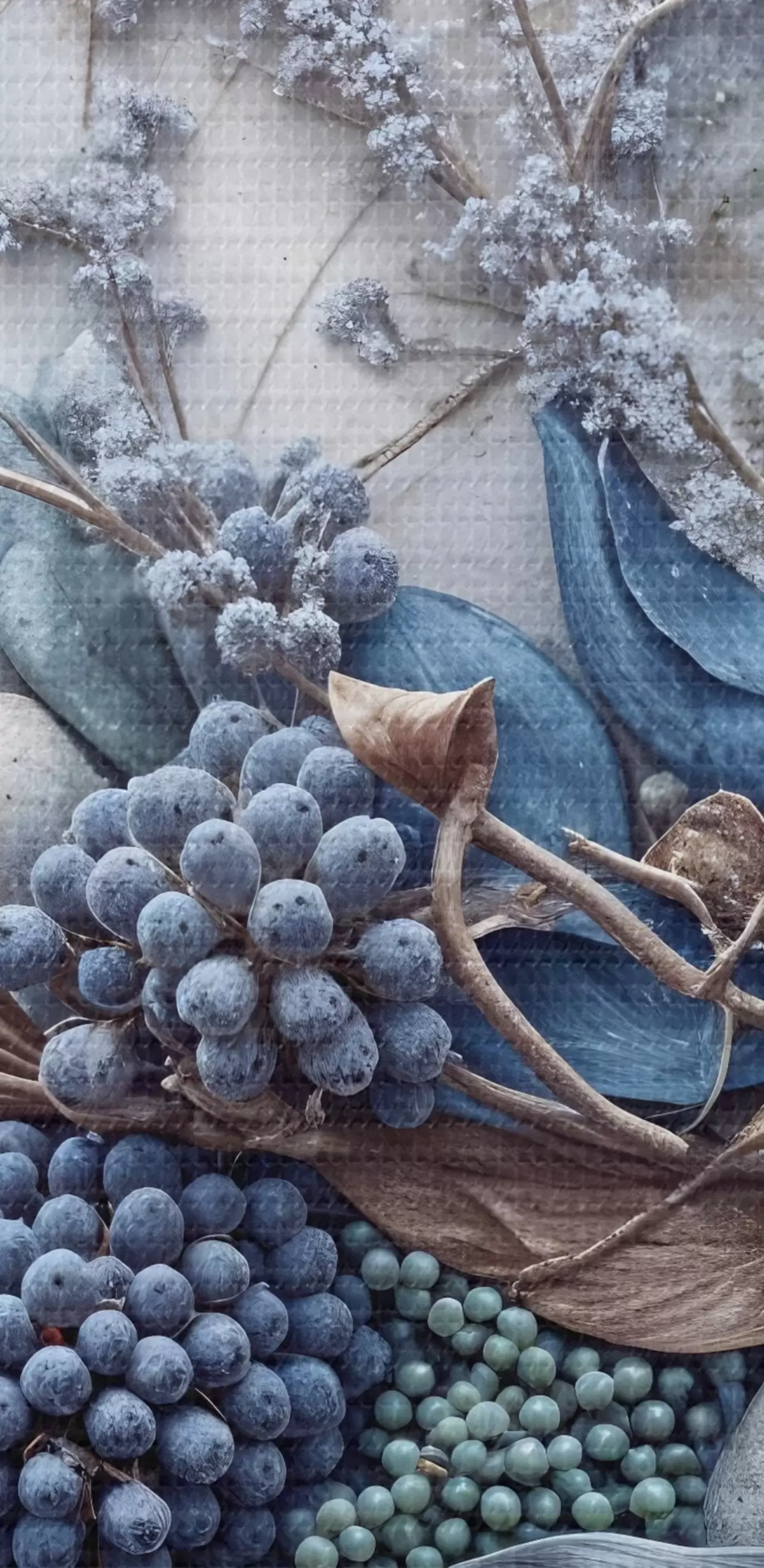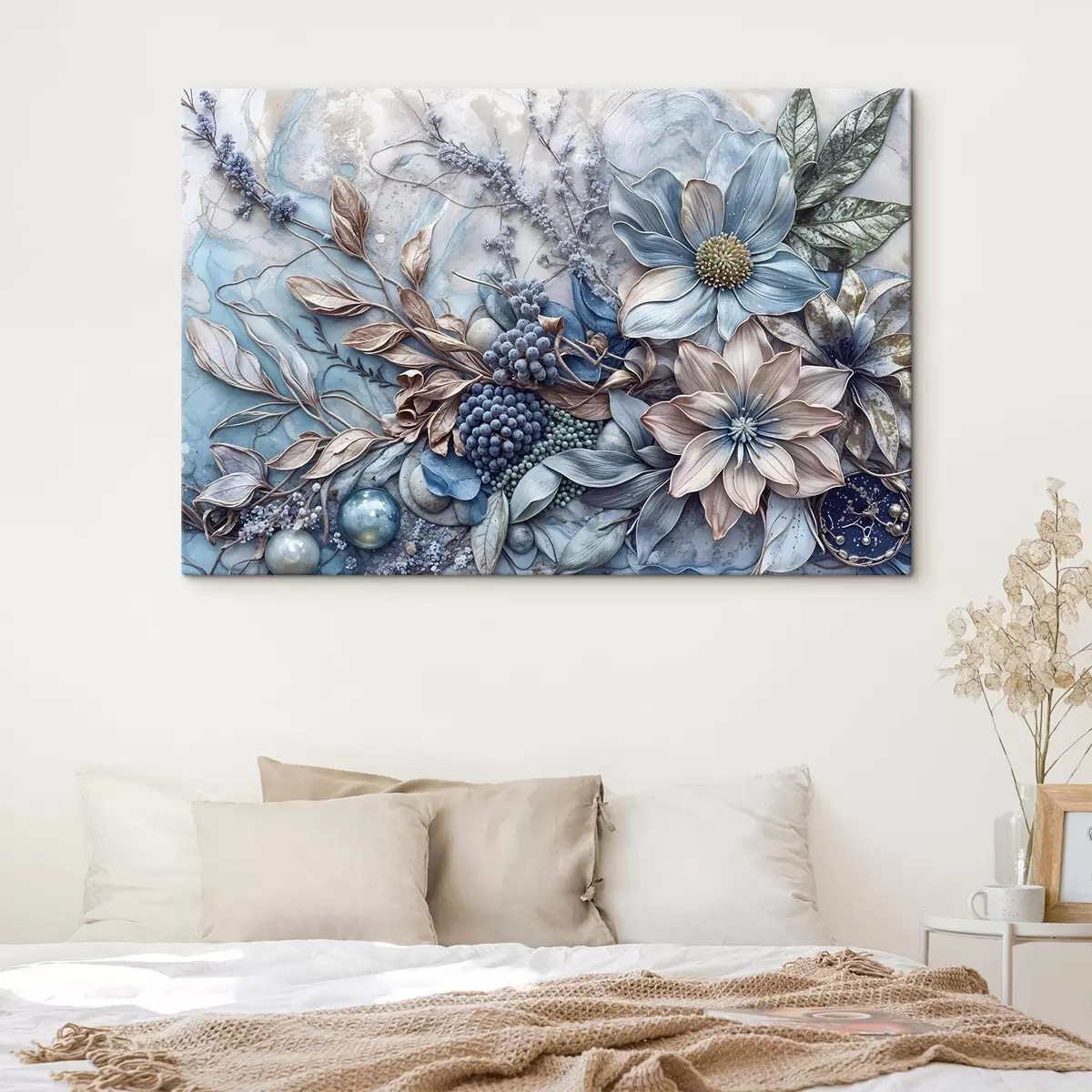 Obraz Detailní texturovaná abstraktní svěží květina s velkými, zářivě modrými a růžovými květy, bobulemi a dalšími botanickými prvky Č. s42210