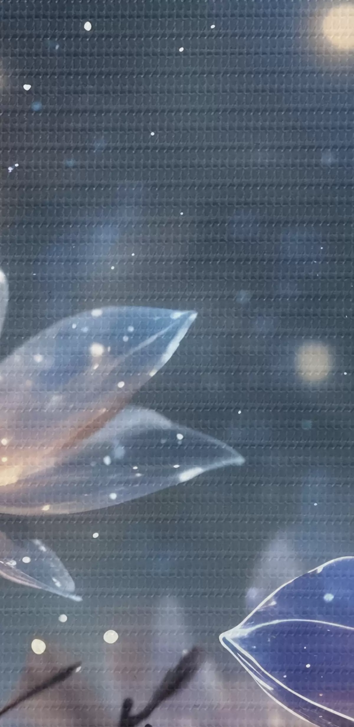 Obraz Abstraktní fantasy květiny na větvích s texturovanými okvětními lístky s hvězdami a měsícem na pozadí noční oblohy Č. s42211