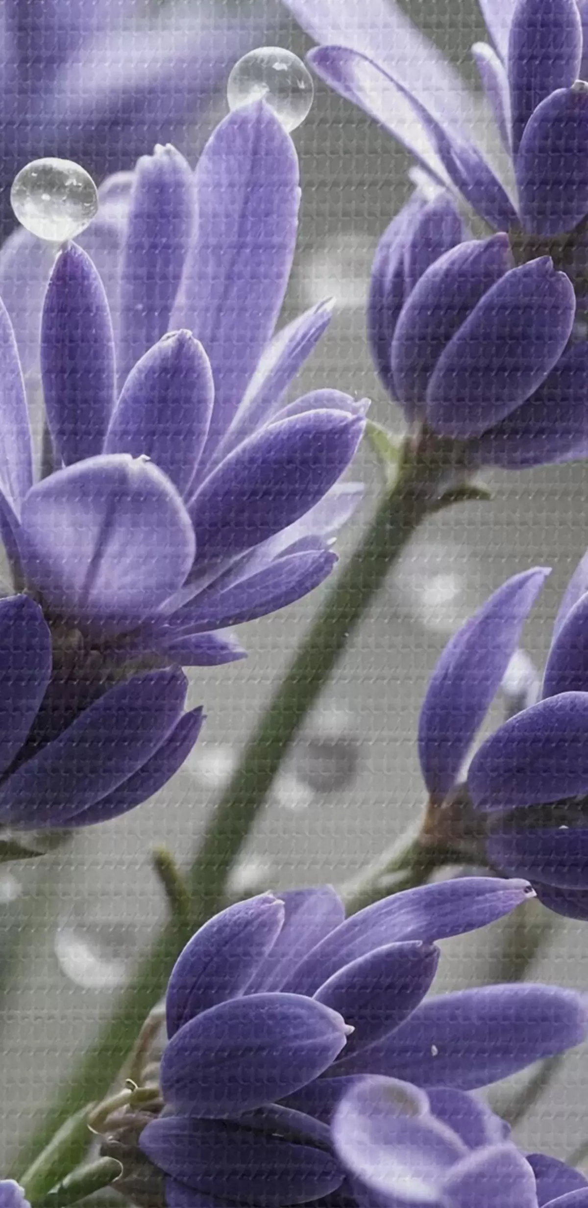 Obraz Fialové levandulové květy s kapkami vody na okvětních lístcích na rozmazaném pozadí Č. s42229