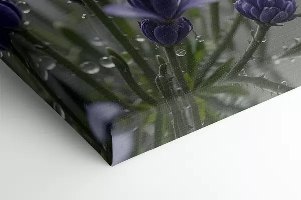 Obraz Fialové levandulové květy s kapkami vody na okvětních lístcích na rozmazaném pozadí Č. s42229