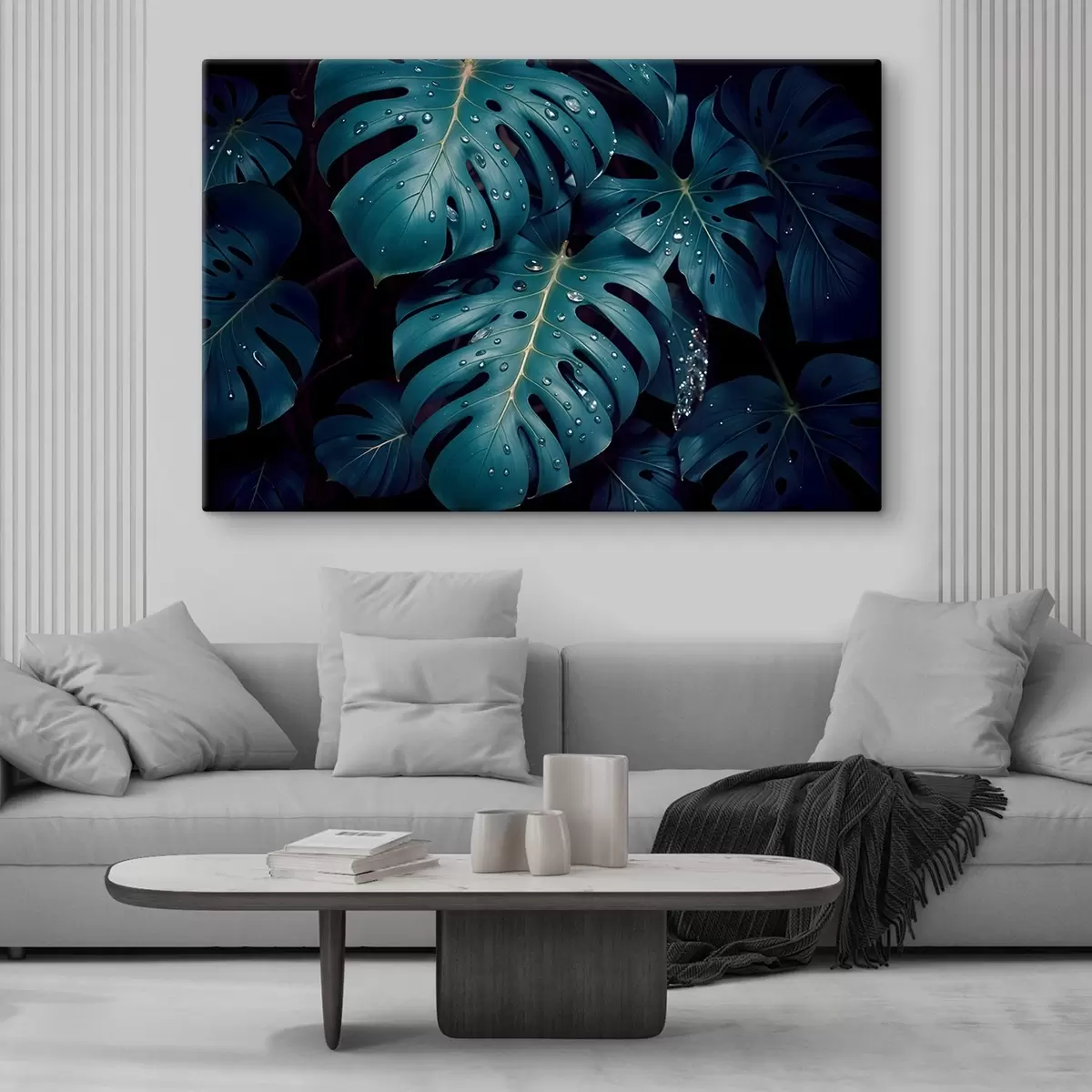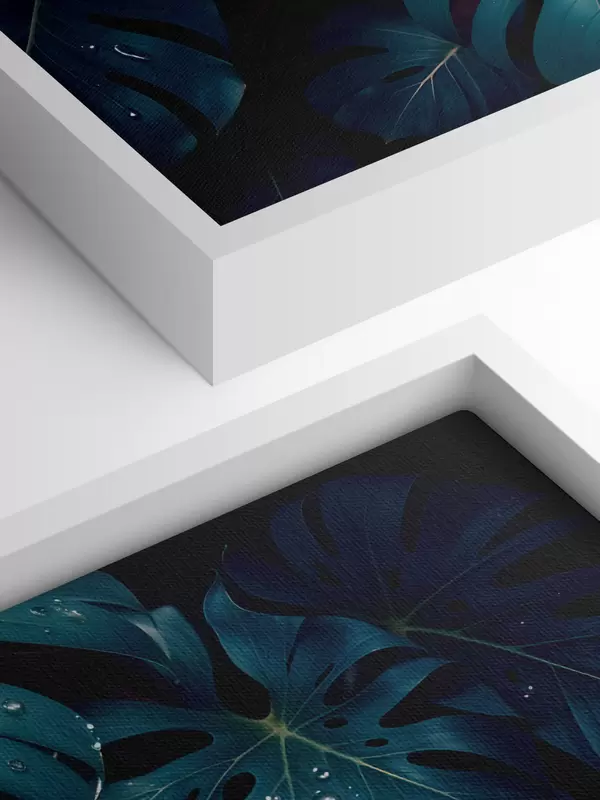 Obraz Svěží listy tropické monstery s kapkami vody na tmavém pozadí , které vytváří náladový a atmosférický tisk Č. s42233