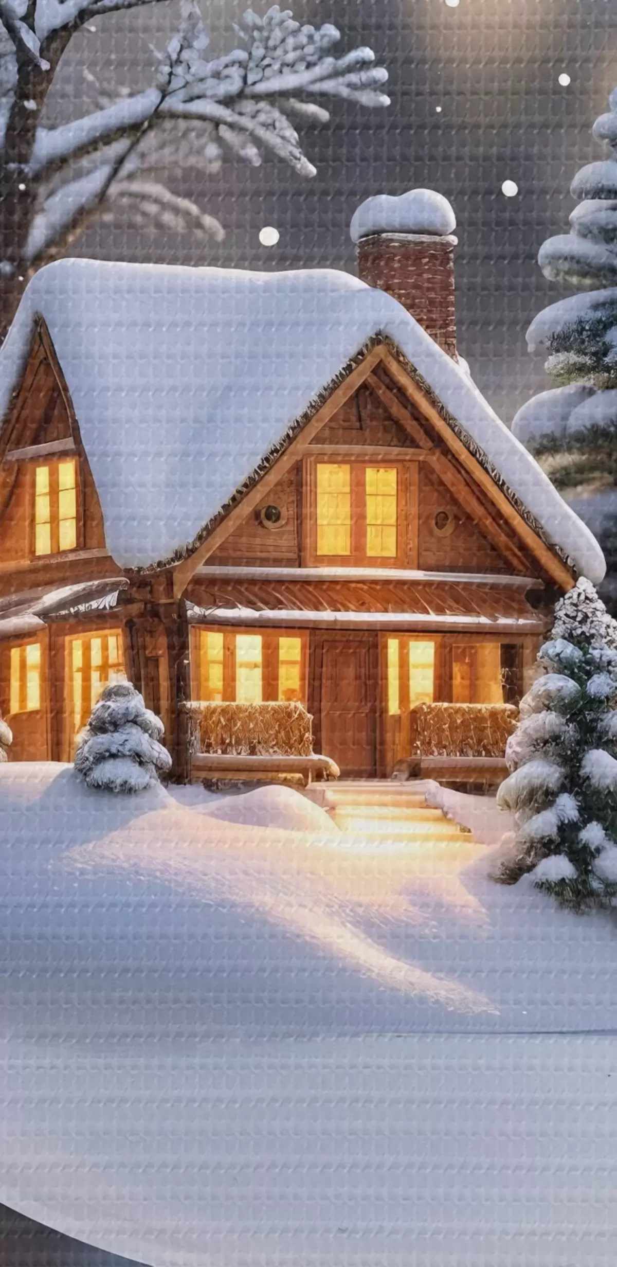 Obraz Skleněný vánoční globus se zasněženou zimní krajinou uvnitř, s útulnou chatou v lese s borovicemi Č. s42236
