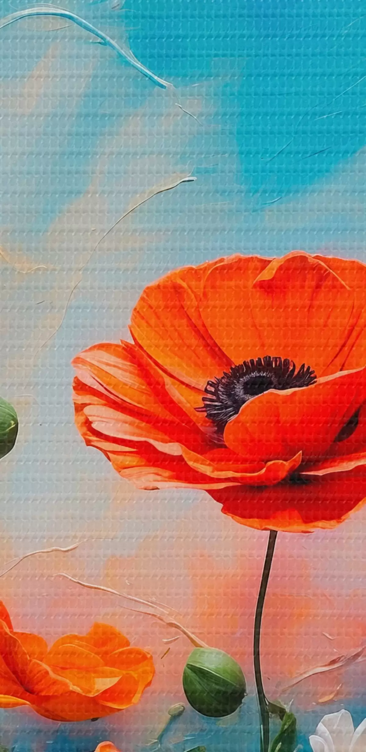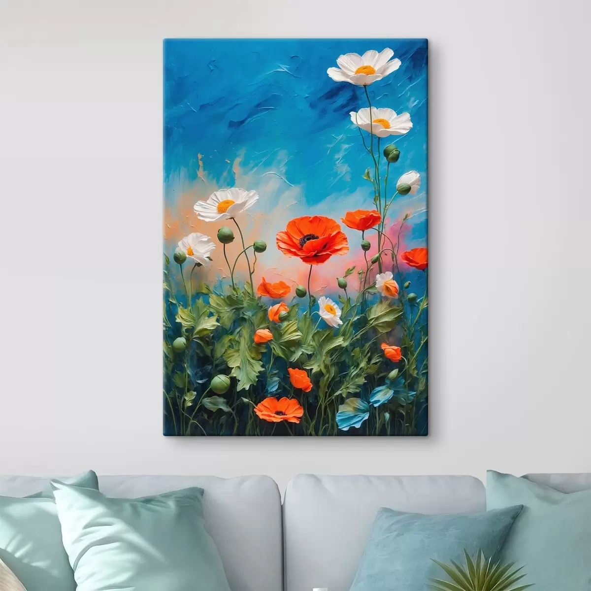 Obraz Sedmikrásky a vlčí máky na modrém pozadí Č. s42261