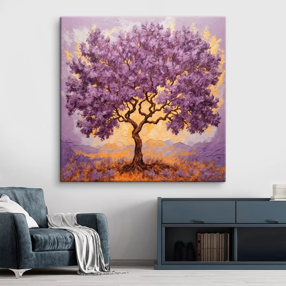 Obraz Fialový strom na žluto-fyolotolovém pozadí Č. s42272